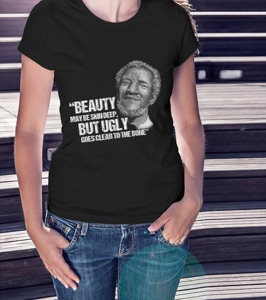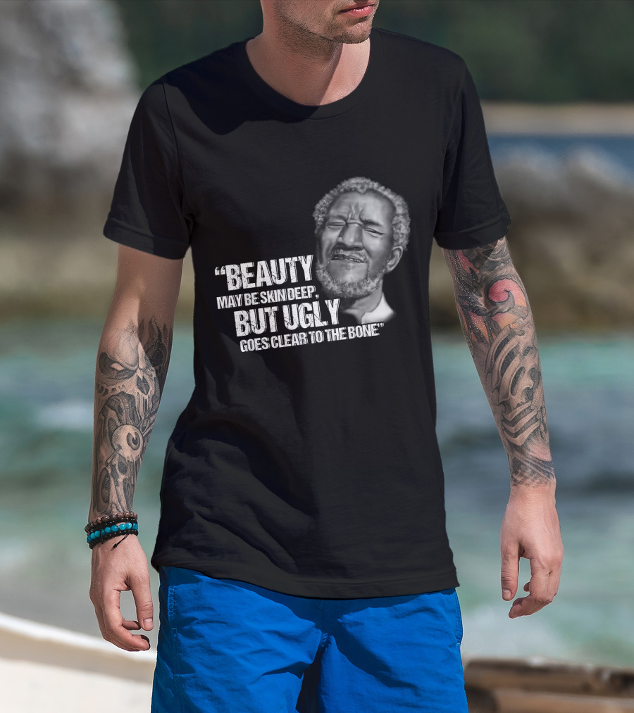 The Beauty May Be Skin Deep But Ugly Goes Clear to the Bone Red Foxx T-shirt is designed for everyday wear and a consistent fit. Fabric is pre-shrunk ring-spun cotton with durable stitching. See the size chart below for exact measurements.