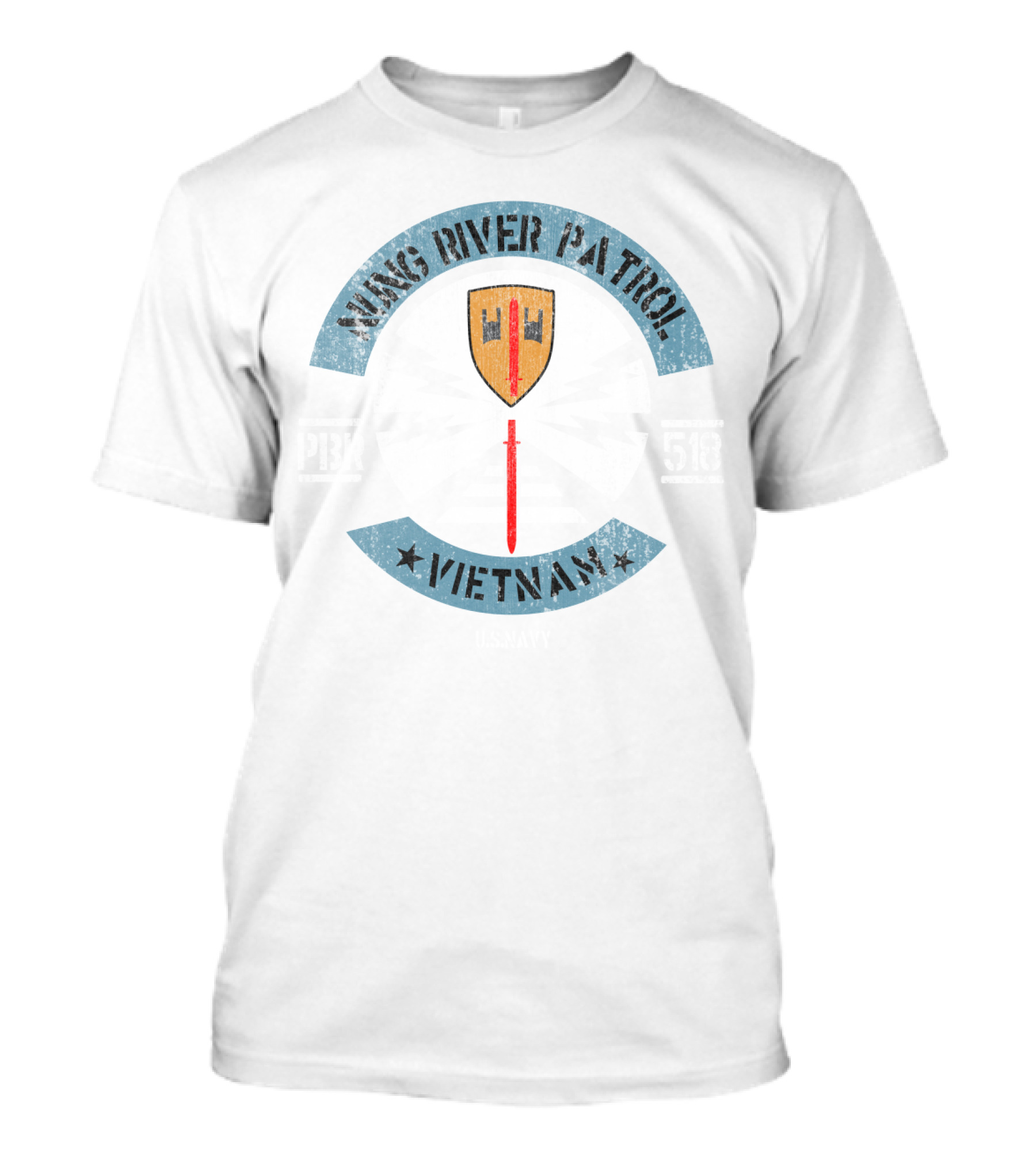 The Apocalypse Now Nung River Patrol Vietnam Shield T-shirt is designed for everyday wear and a consistent fit. Fabric is pre-shrunk ring-spun cotton with durable stitching. See the size chart below for exact measurements.