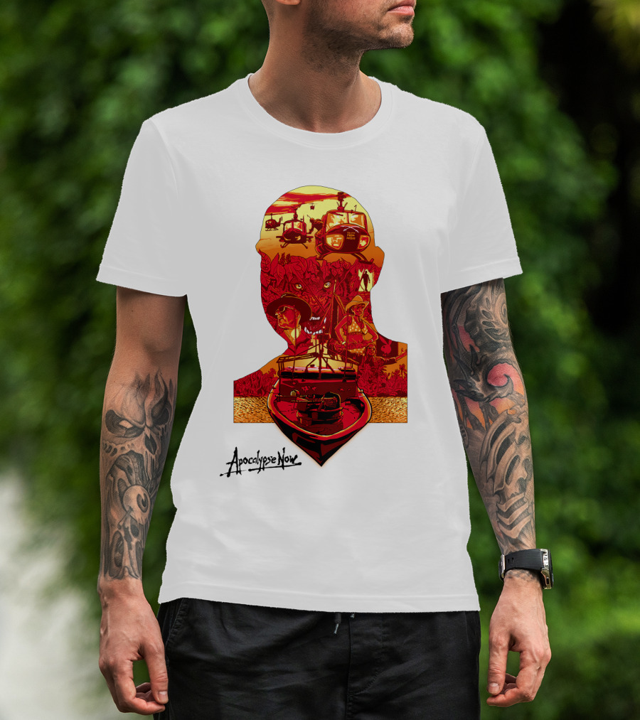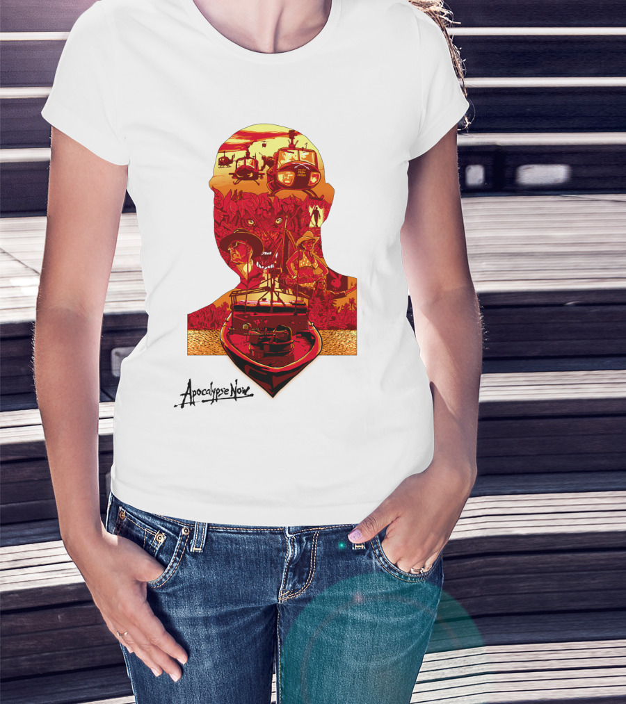 The Apocalypse Now Graphic with Helicopters and Boat T-shirt is designed for everyday wear and a consistent fit. Fabric is pre-shrunk ring-spun cotton with durable stitching. See the size chart below for exact measurements.