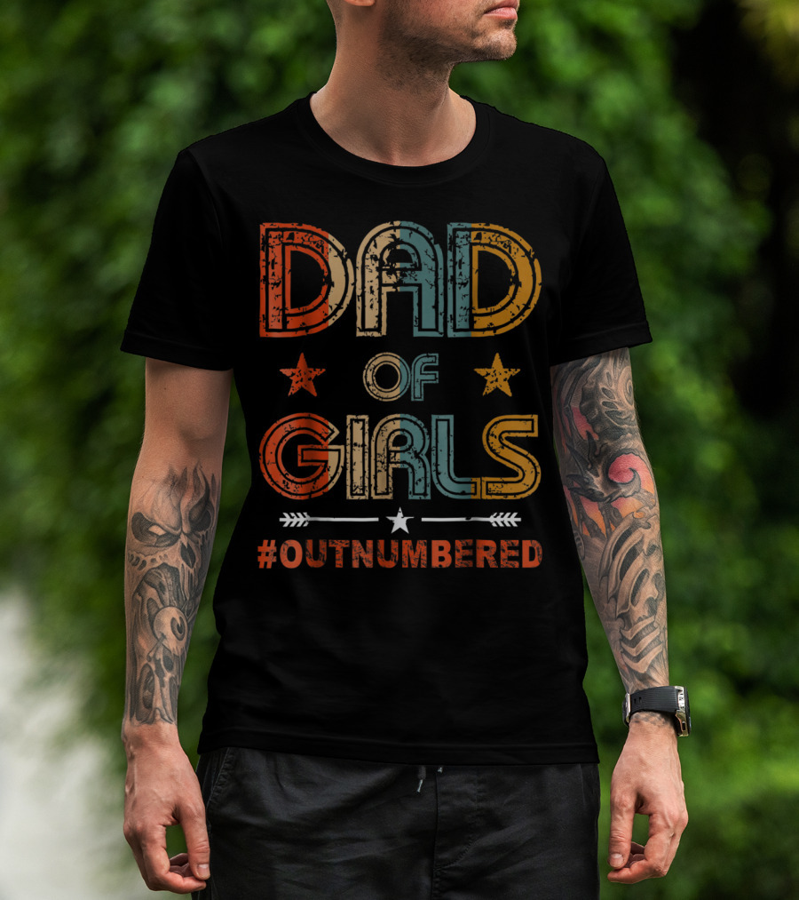 Dad Of Girls Outnumbered Stars Arrow Hash Outnumbered T-Shirt