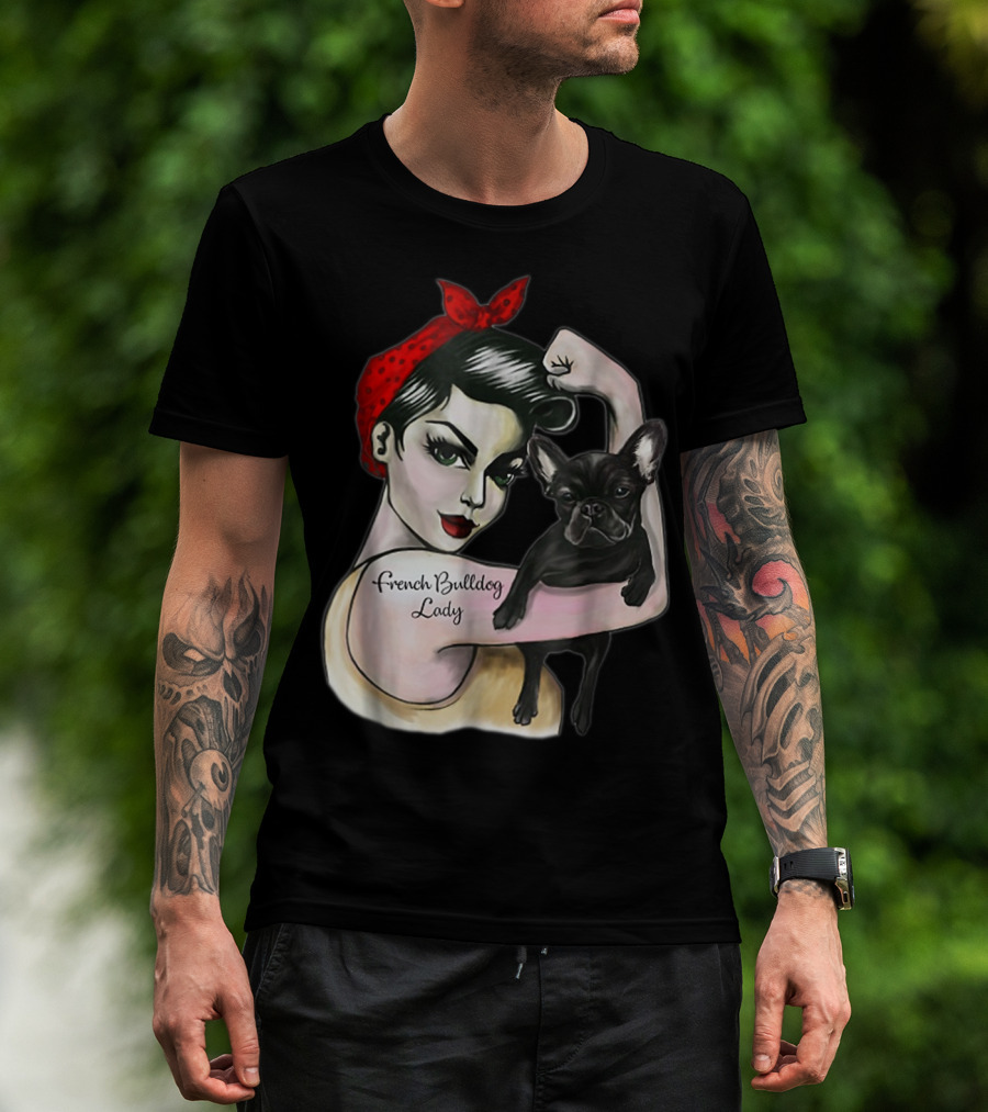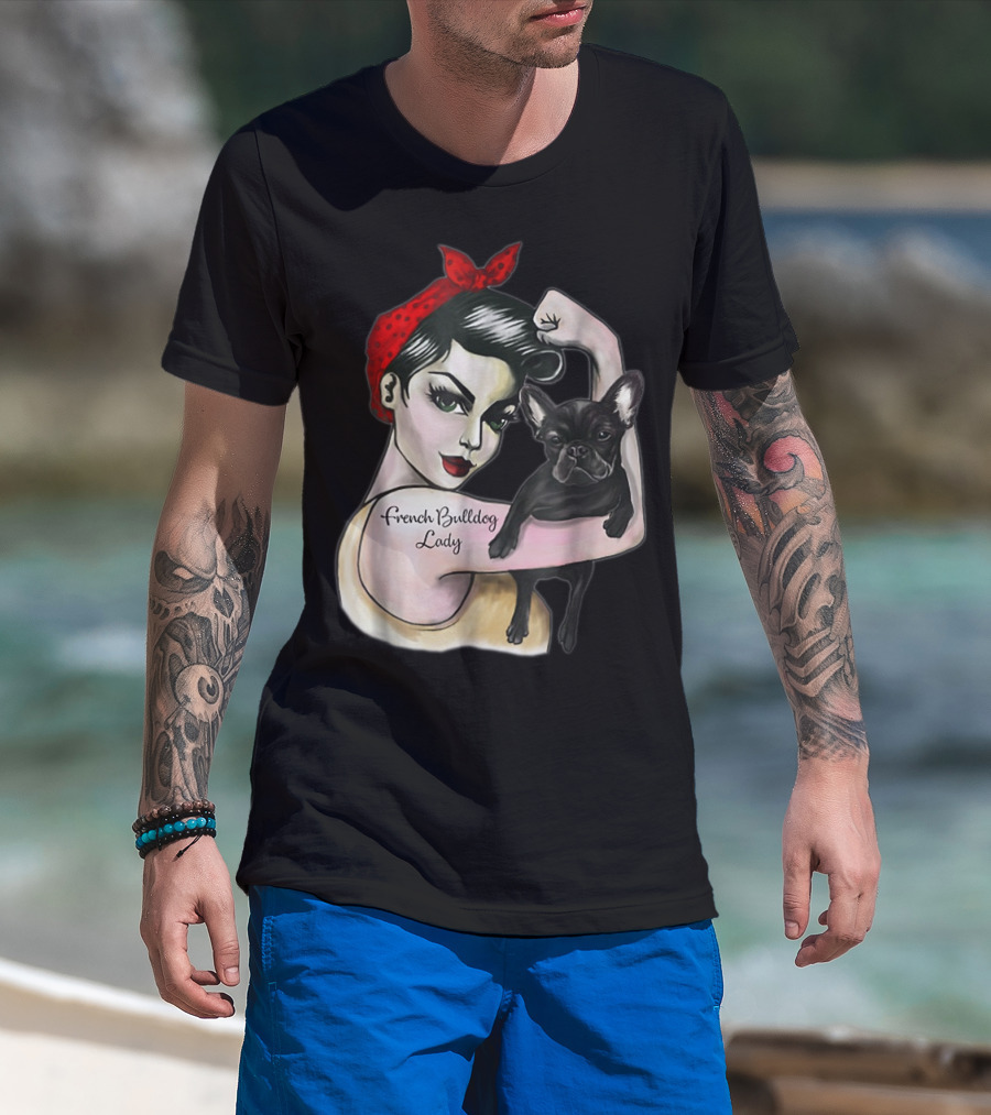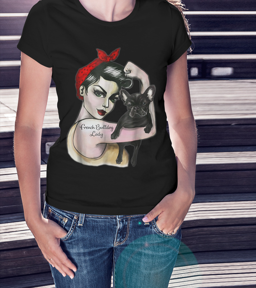 French Bulldog Lady Strong Rosie The Riveter T-Shirt