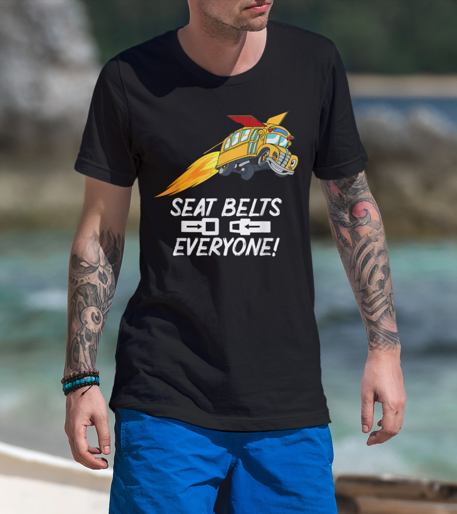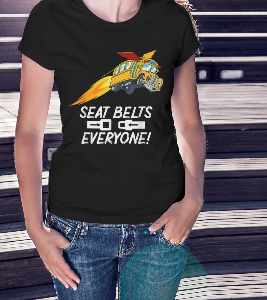 Seat Belts Everyone Funny School Bus With Rocket Boosters T-Shirt
