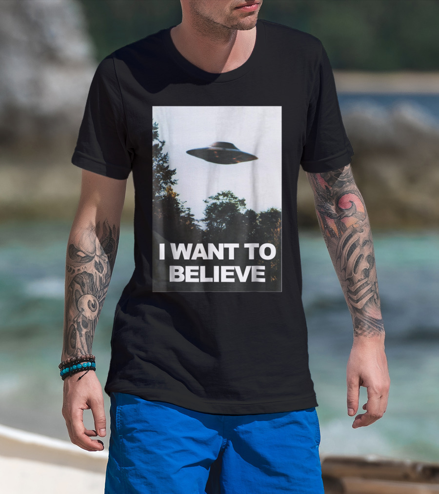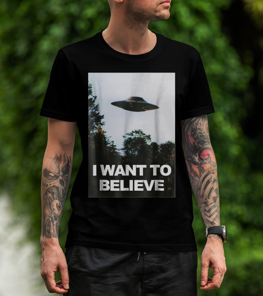 The Alien UFO Hunter I Want To Believe T-shirt is designed for everyday wear and a consistent fit. Fabric is pre-shrunk ring-spun cotton with durable stitching. See the size chart below for exact measurements.
