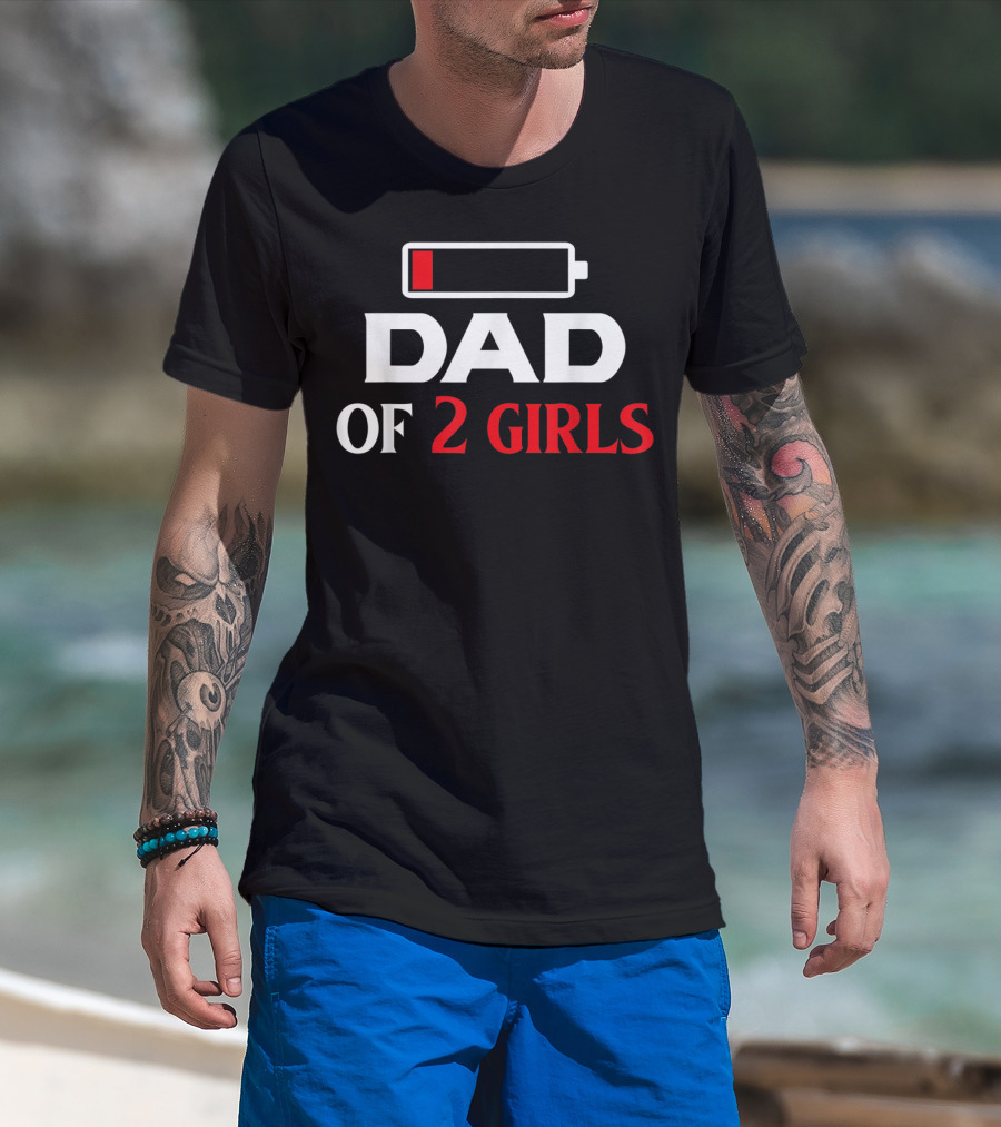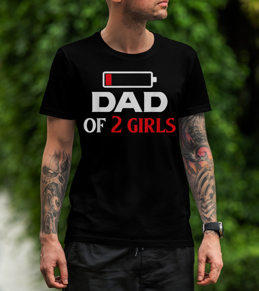Dad Of 2 Girls Funny Low Battery Best Cool Mens T-Shirt