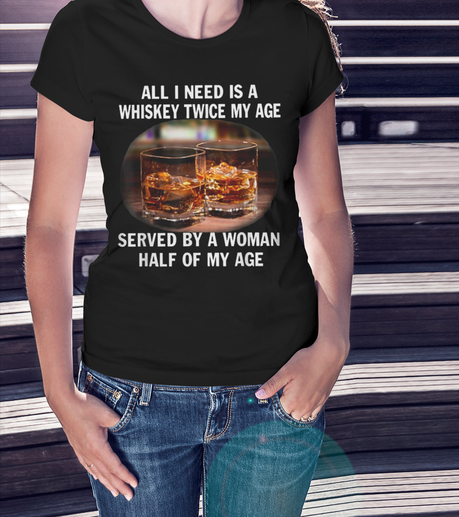 All I Need Is A Whiskey Twice My Age Served By A Woman Half Of My Age T-Shirt