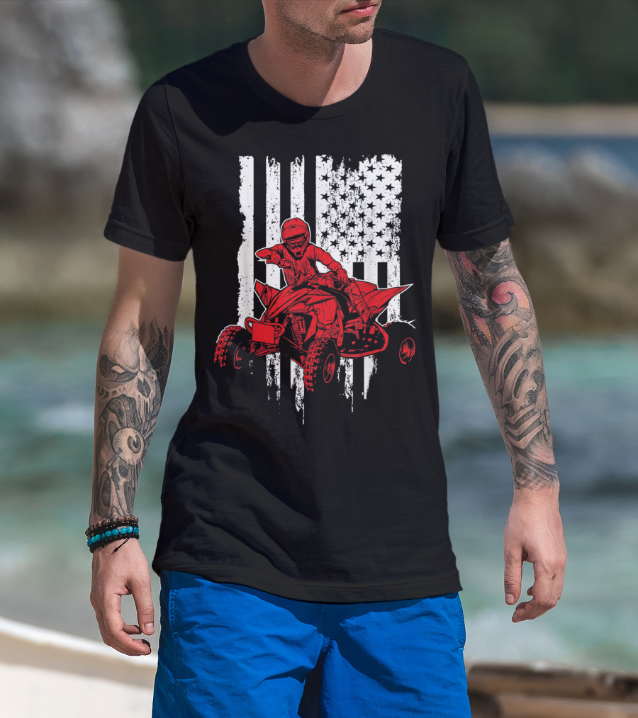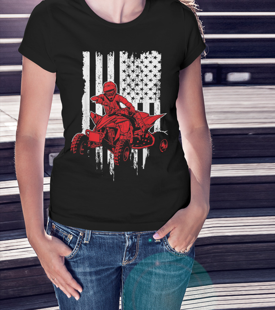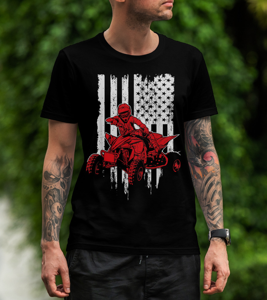 American 4 Wheeler ATV With Grunge USA Flag Background T-Shirt