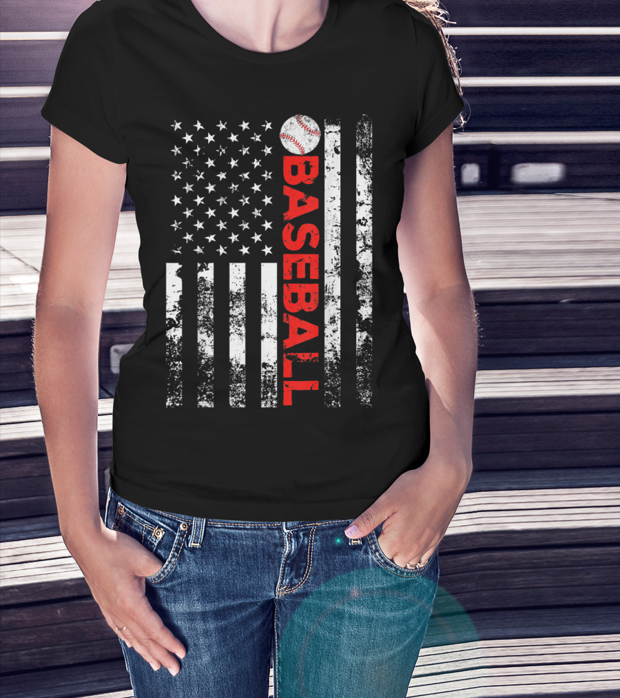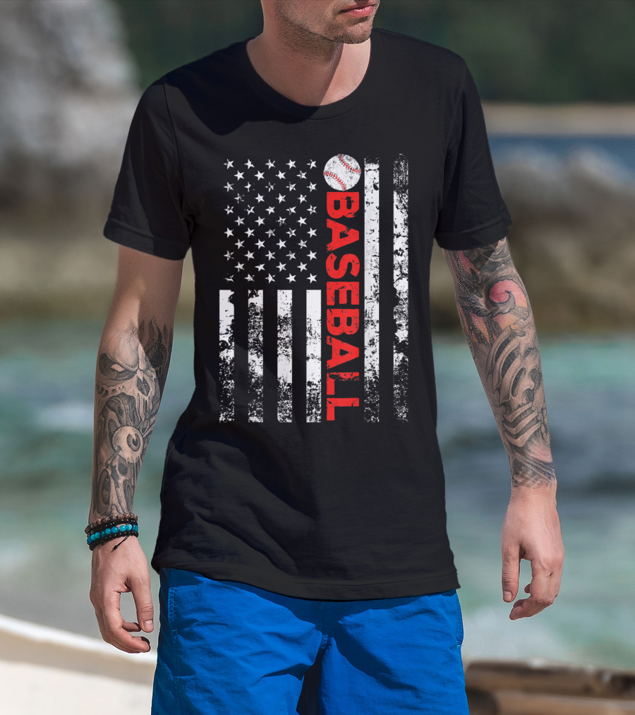 The American Flag Baseball Stripes T-shirt is designed for everyday wear and a consistent fit. Fabric is pre-shrunk ring-spun cotton with durable stitching. See the size chart below for exact measurements.