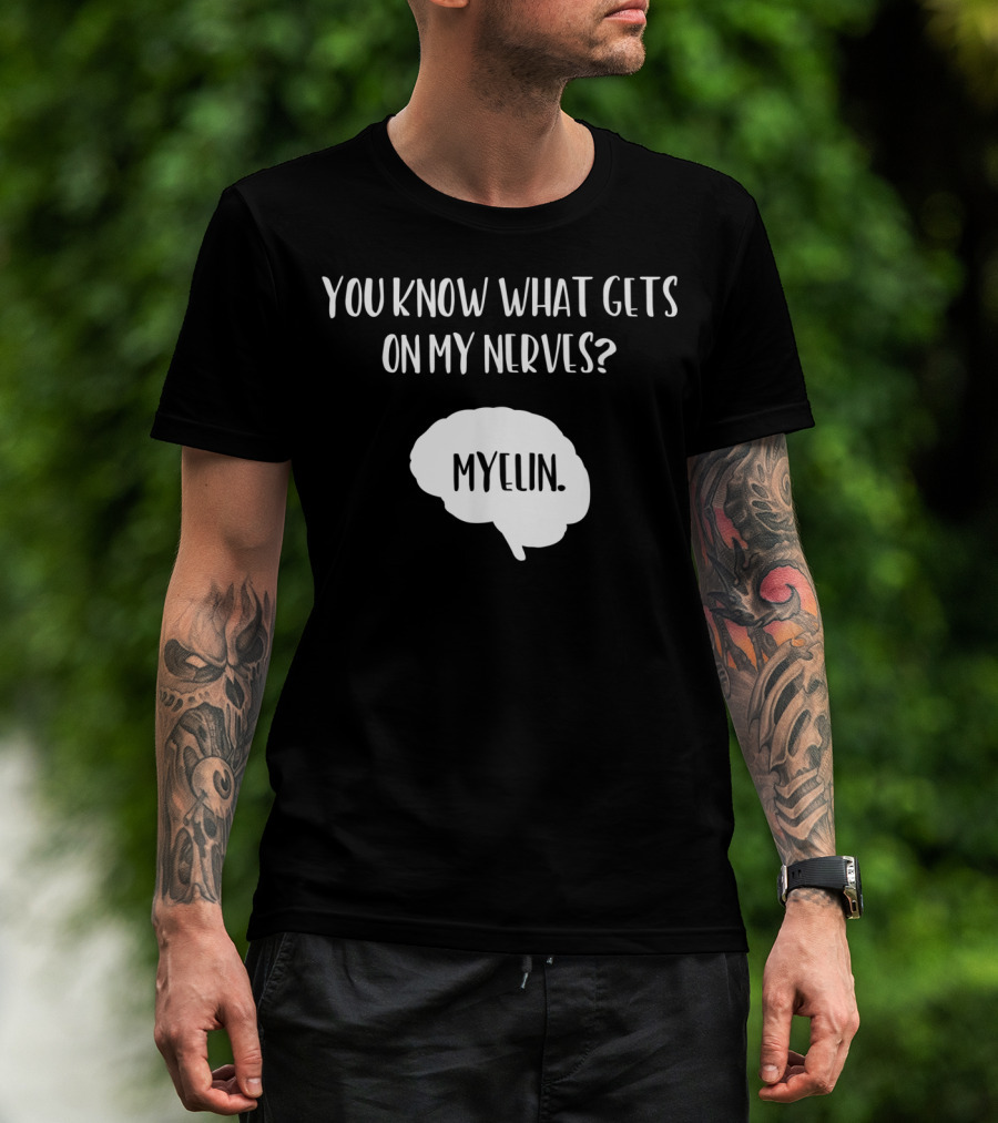 You Know What Gets On My Nerves Myelin Funny Science Neuroscience Teacher Brain T-Shirt