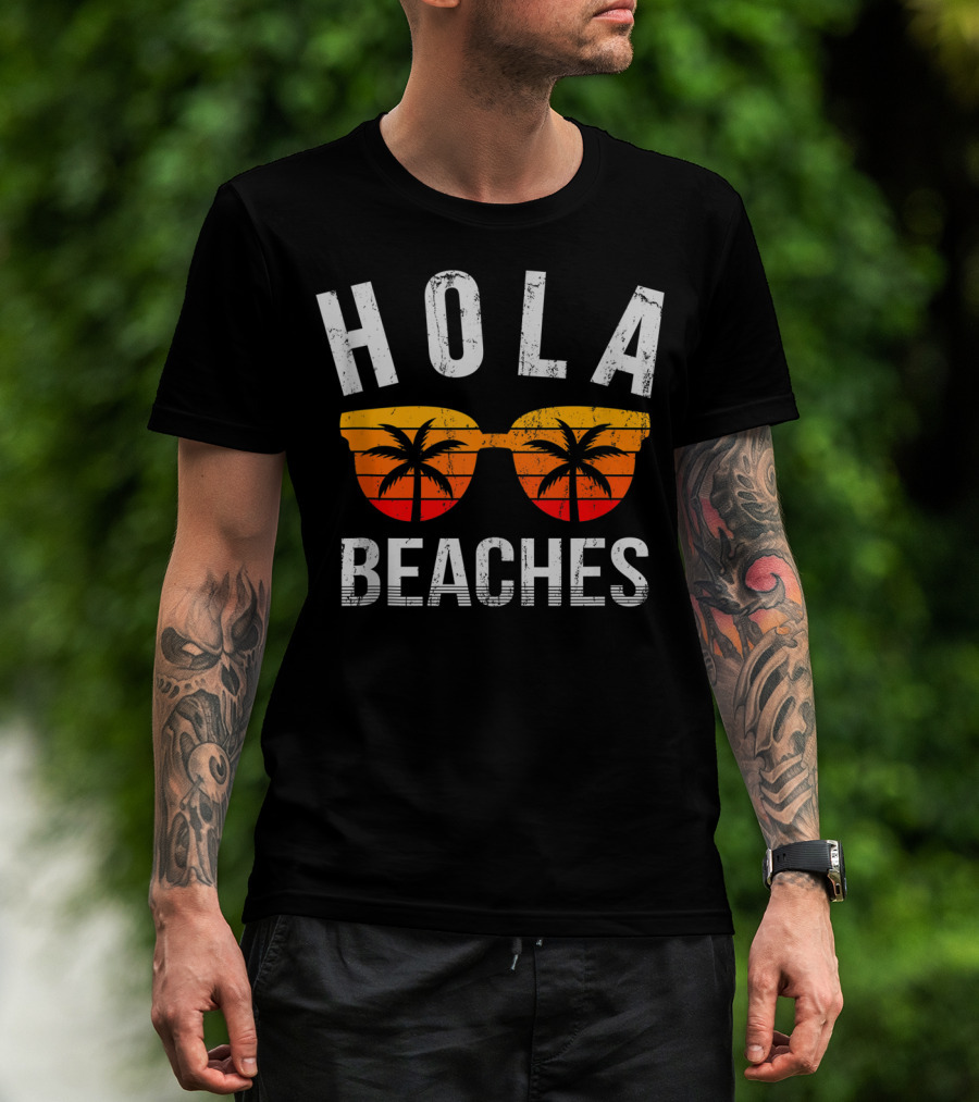 Hola Beaches Sunglasses Palm Trees Vacation Vibes T-Shirt