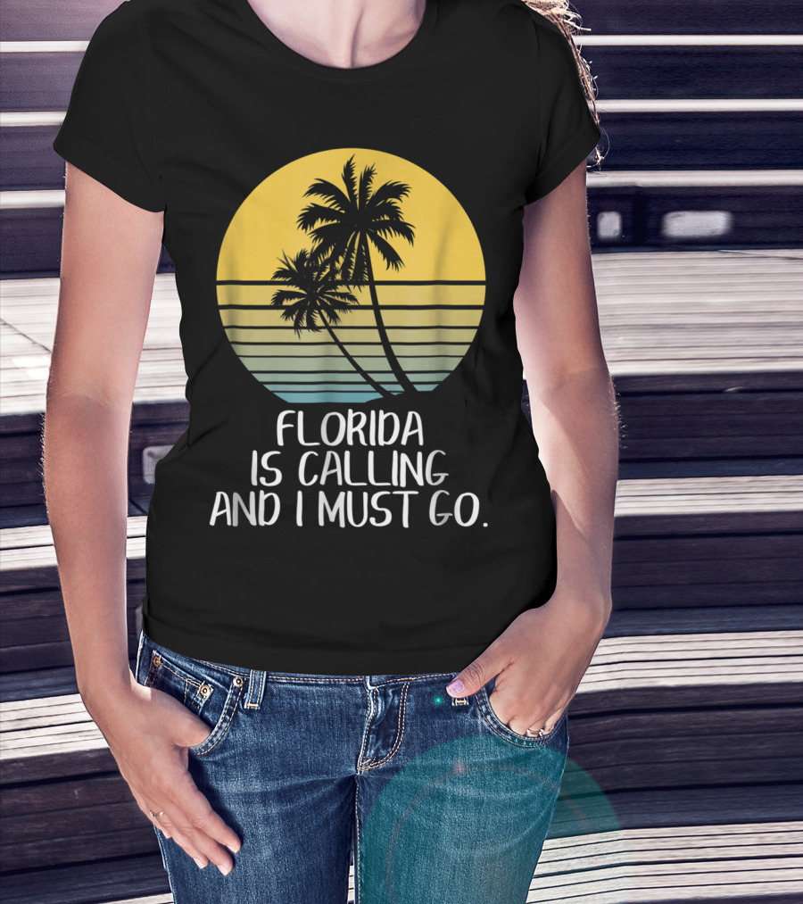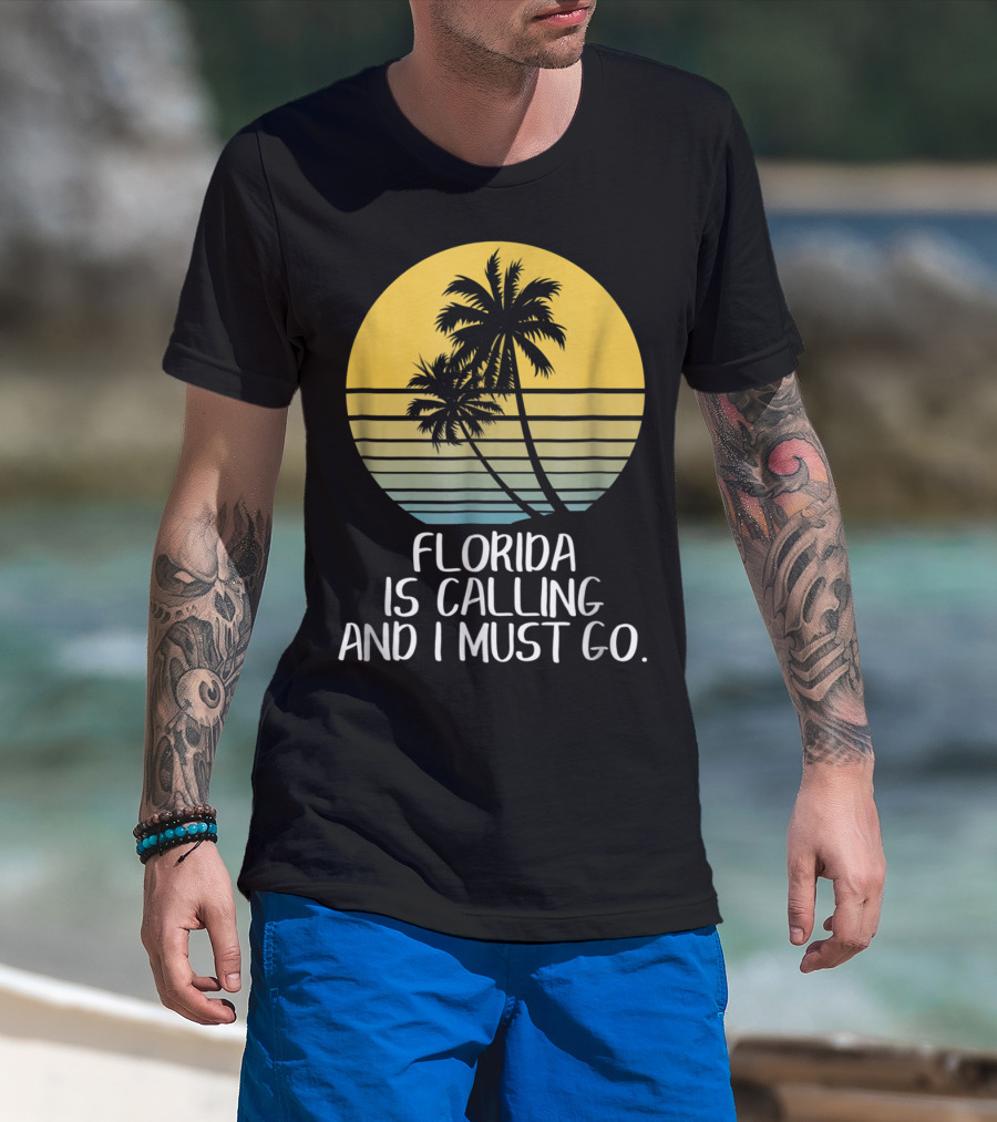Florida Is Calling And I Must Go Tropical Sunset Beach Vacation T-Shirt