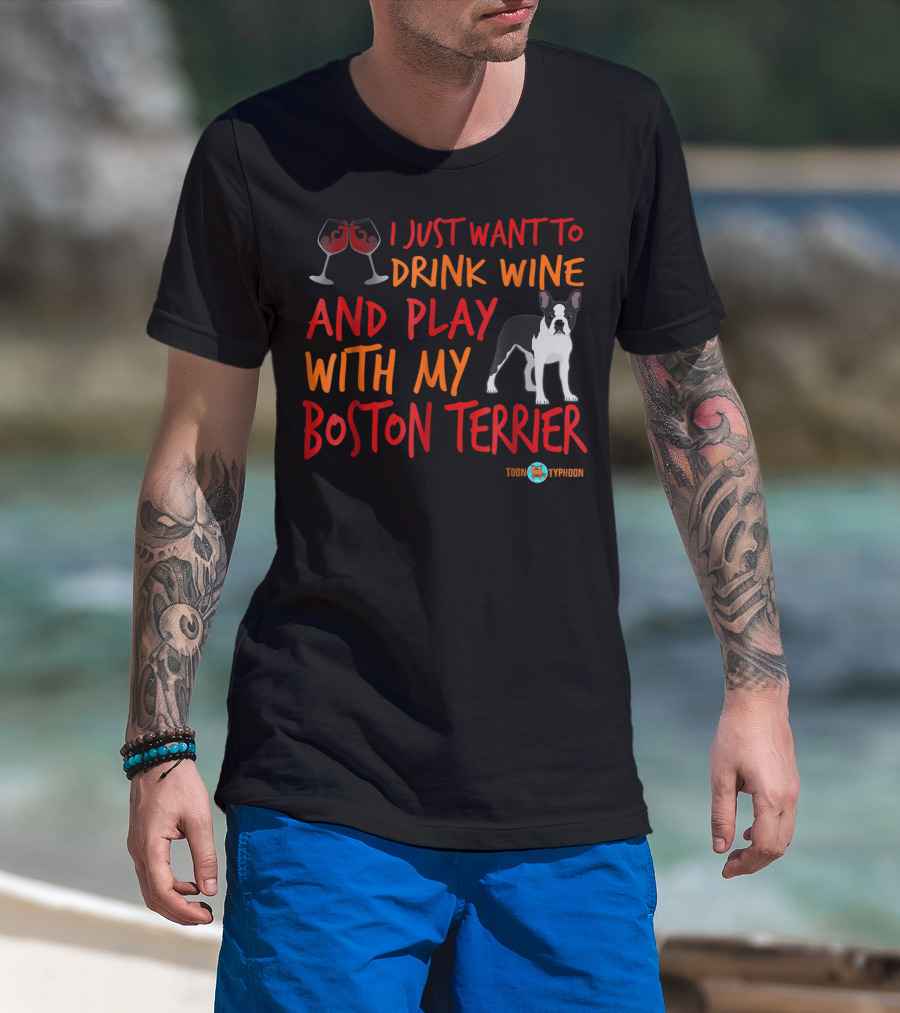 I Just Want To Drink Wine And Play With My Boston Terrier T-Shirt