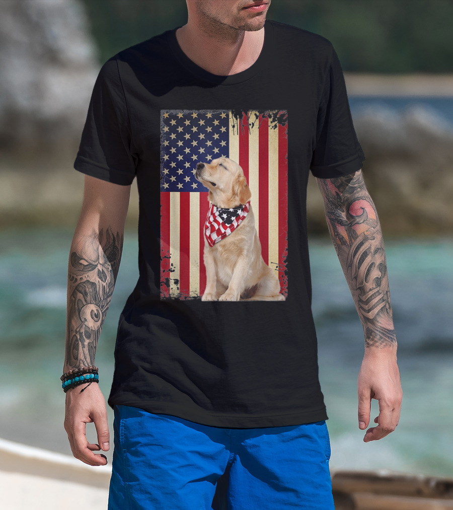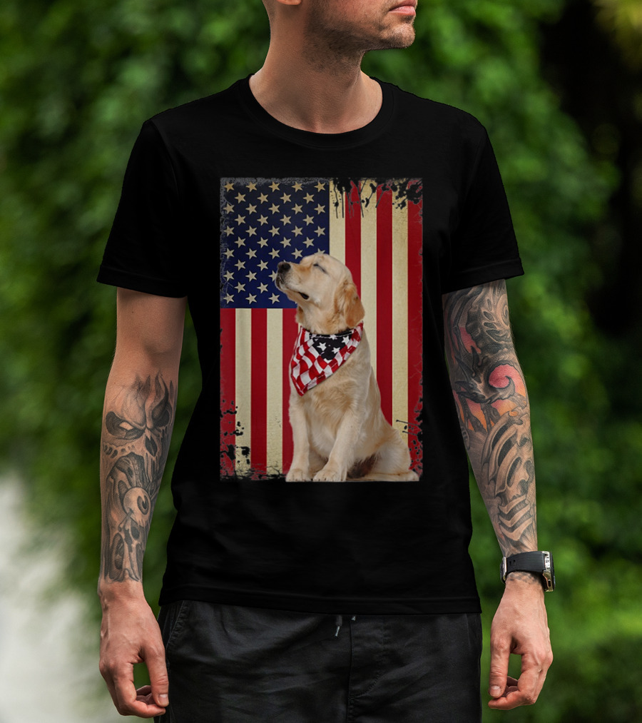 Golden Retriever Smiling American Flag Bandana T-Shirt