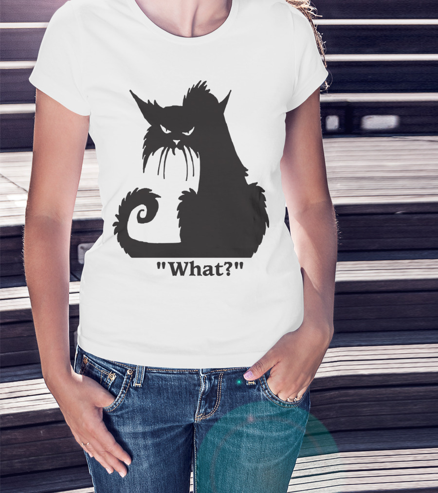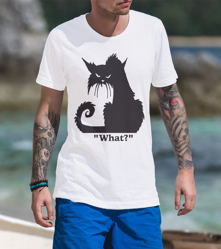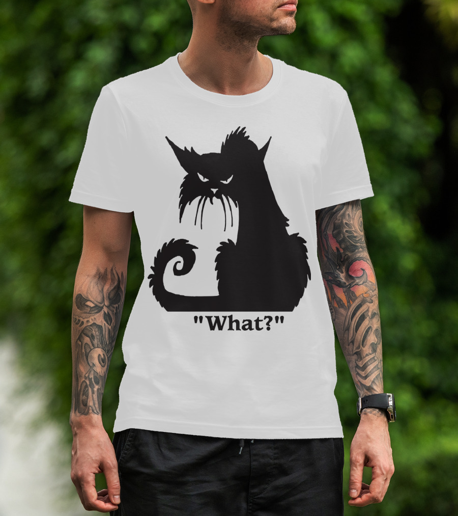 The What? Cat T-shirt is designed for everyday wear and a consistent fit. Fabric is pre-shrunk ring-spun cotton with durable stitching. See the size chart below for exact measurements.