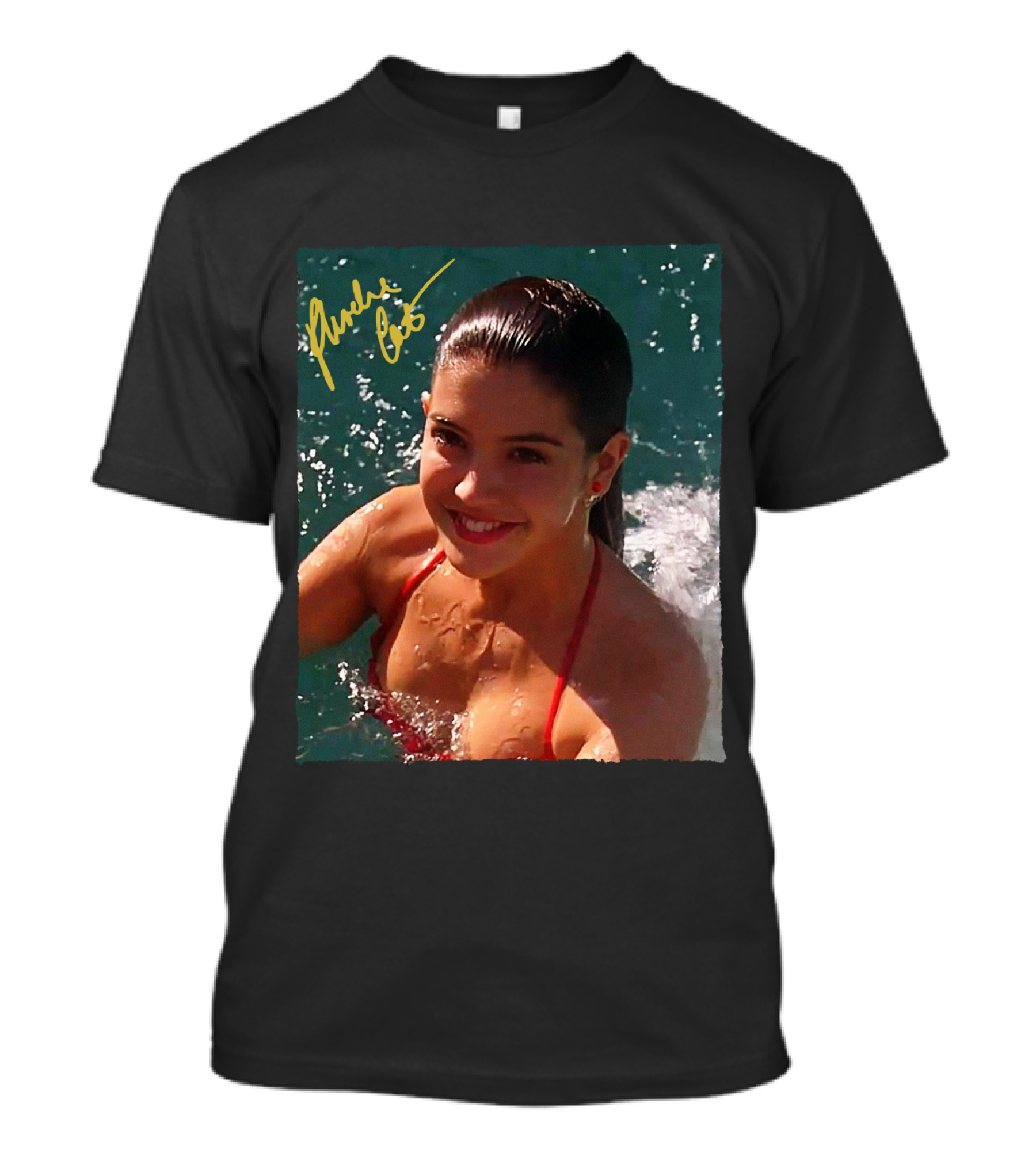 The Fast Times at Ridgemont High Linda Barrett Phoebe Cates Swimming Pool Scene T-shirt is designed for everyday wear and a consistent fit. Fabric is pre-shrunk ring-spun cotton with durable stitching. See the size chart below for exact measurements.