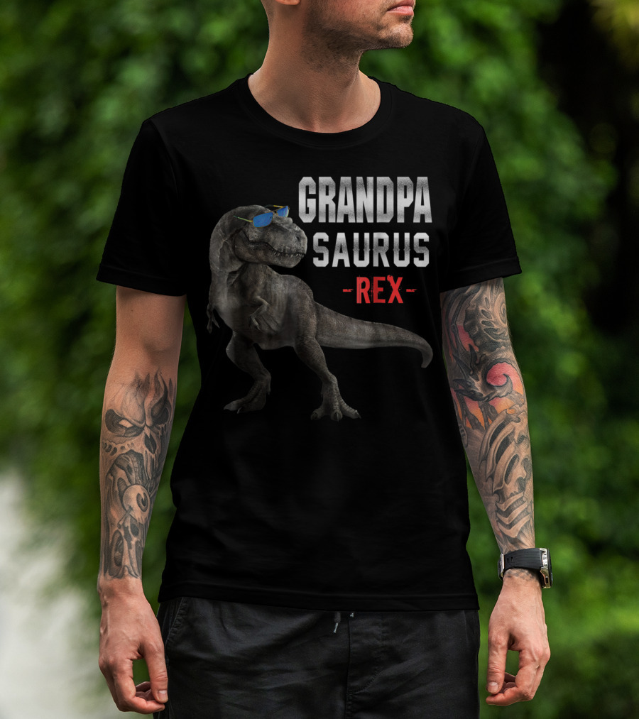 Grandpa Saurus Rex Dinosaur Wearing Sunglasses T-Shirt