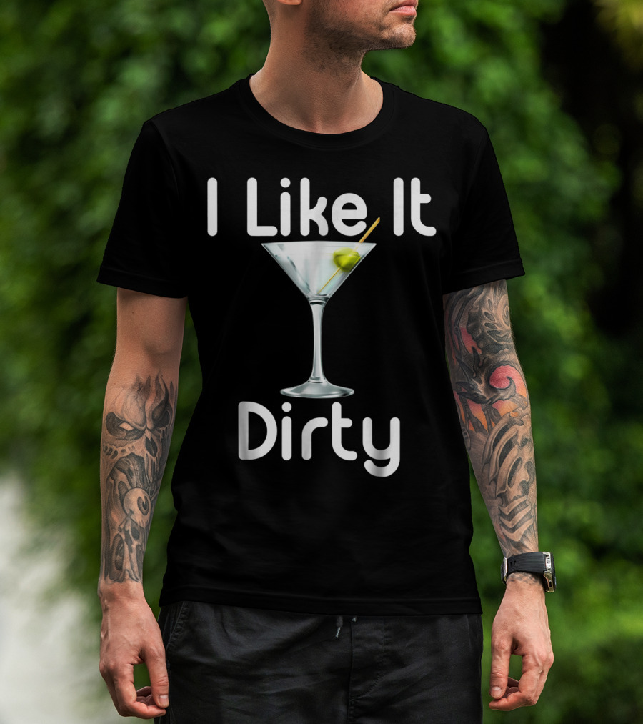The I Like It Dirty Martini T-shirt is designed for everyday wear and a consistent fit. Fabric is pre-shrunk ring-spun cotton with durable stitching. See the size chart below for exact measurements.