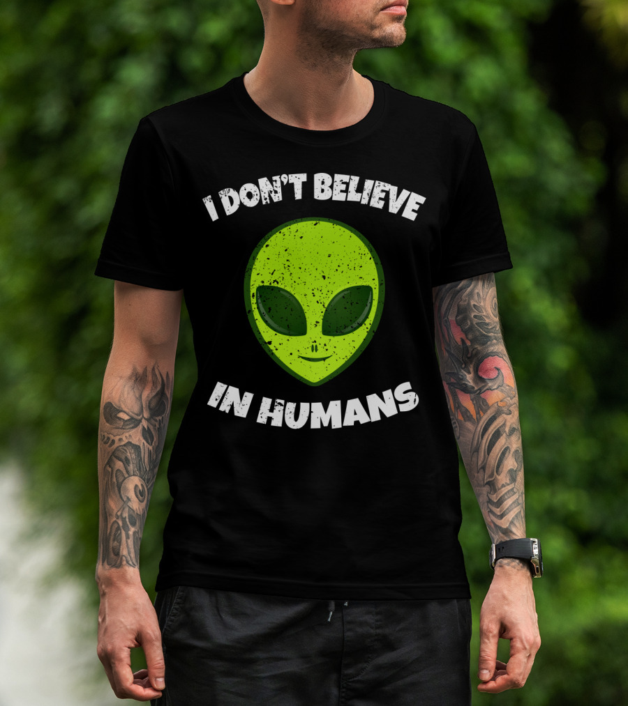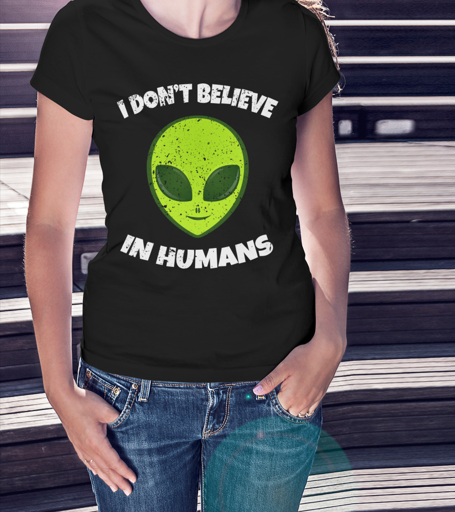 I Don't Believe In Humans Green Alien Head T-Shirt