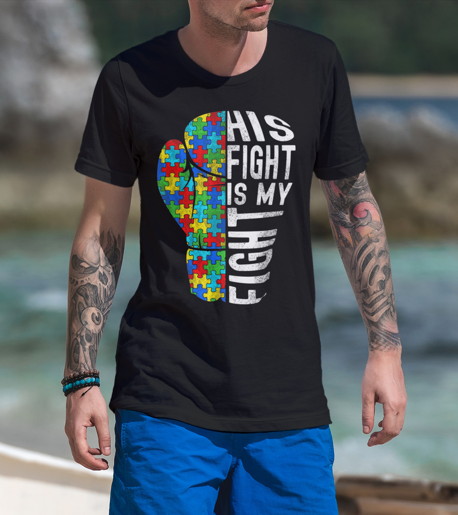 His Fight Is My Fight Autism Awareness Puzzle Boxing Glove T-Shirt