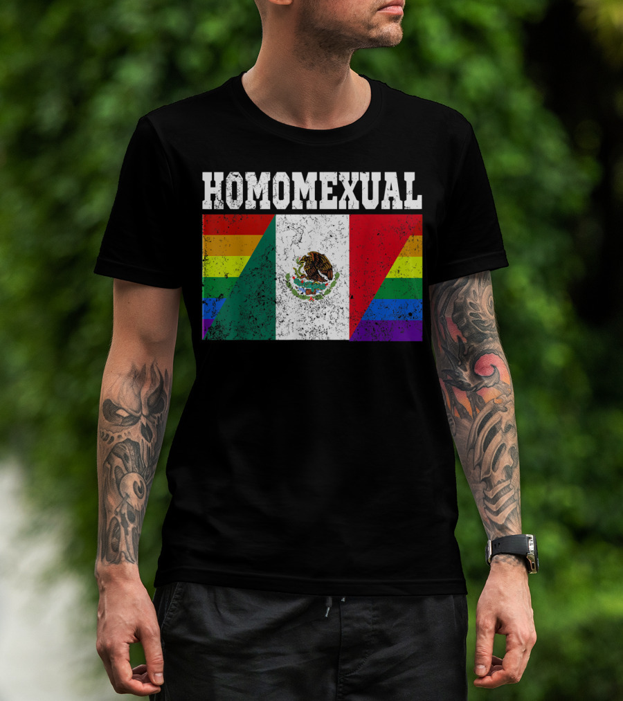 Homomexual Mexican Flag With Rainbow Colors T-Shirt