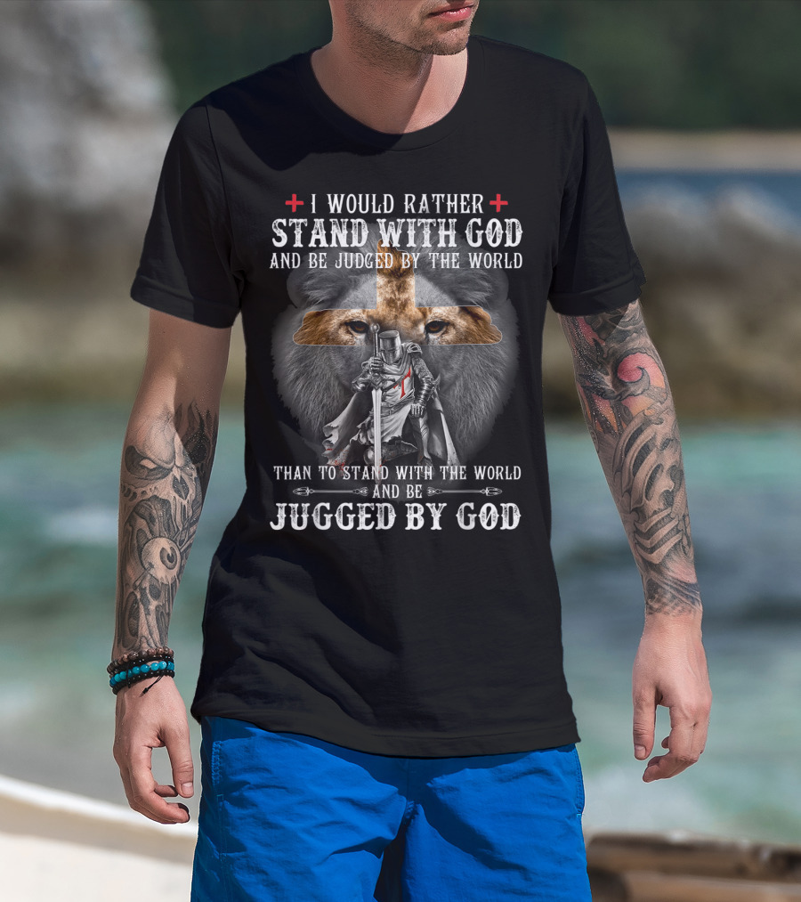 I Would Rather Stand With God Be Judged By World Lion Cross Knight Iconic Symbols T-Shirt