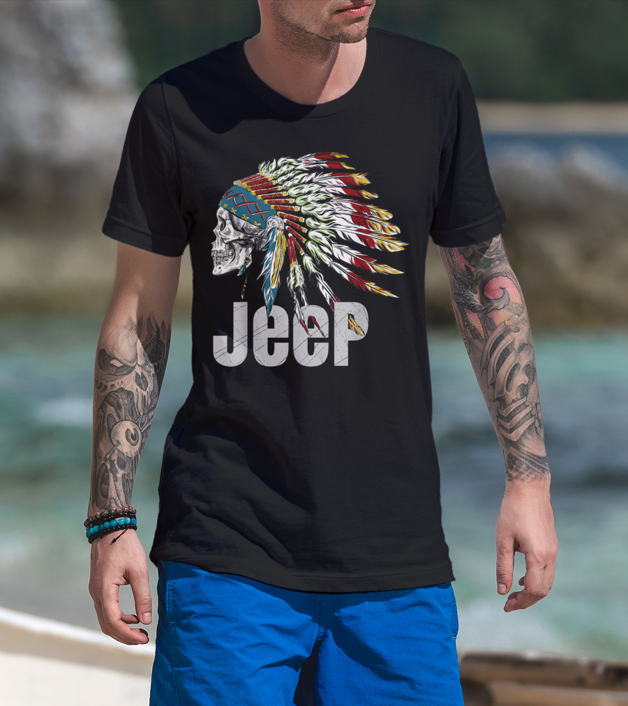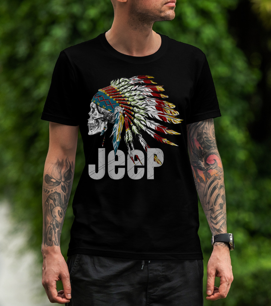Jeep Skull Wearing Native American Headdress T-Shirt