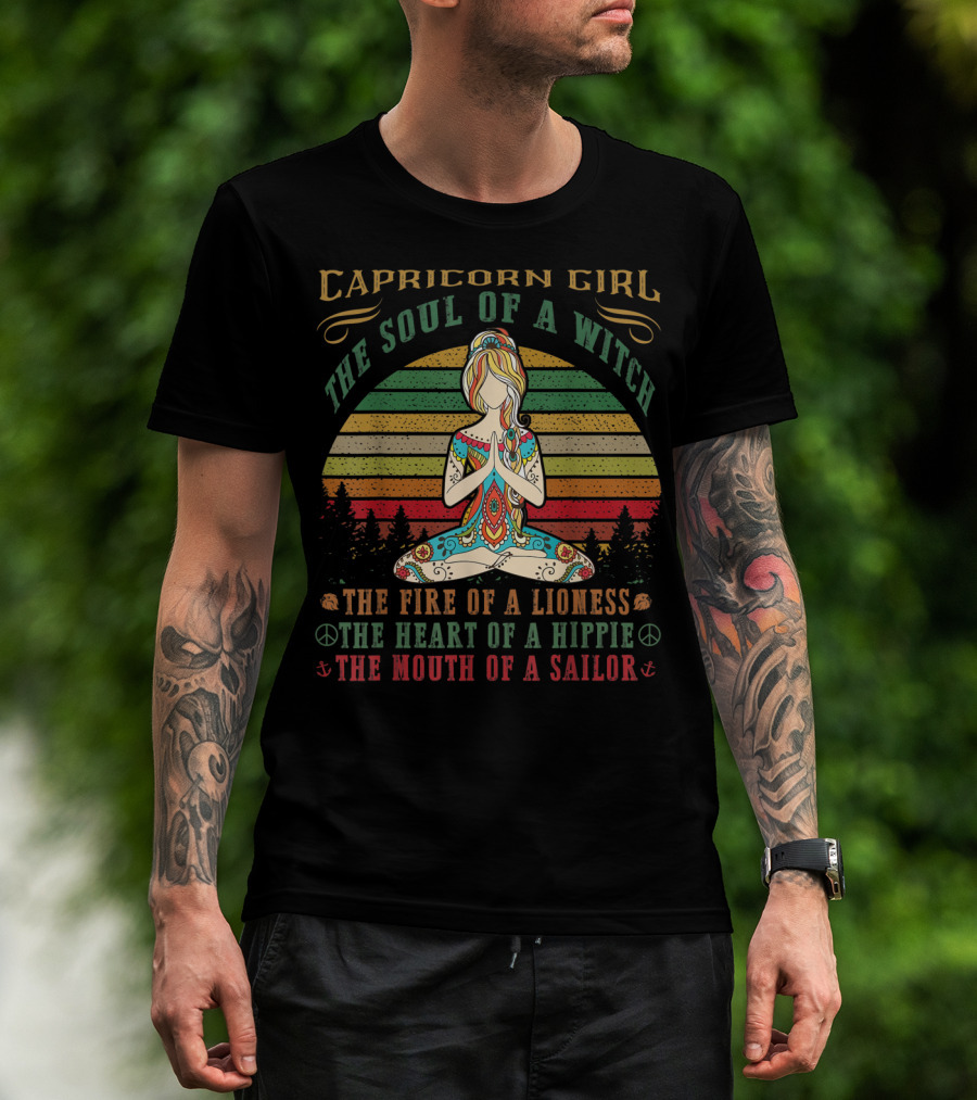 Capricorn Girl Soul Of A Witch Fire Of A Lioness Heart Of A Hippie Mouth Of A Sailor Yoga Birthday T-Shirt