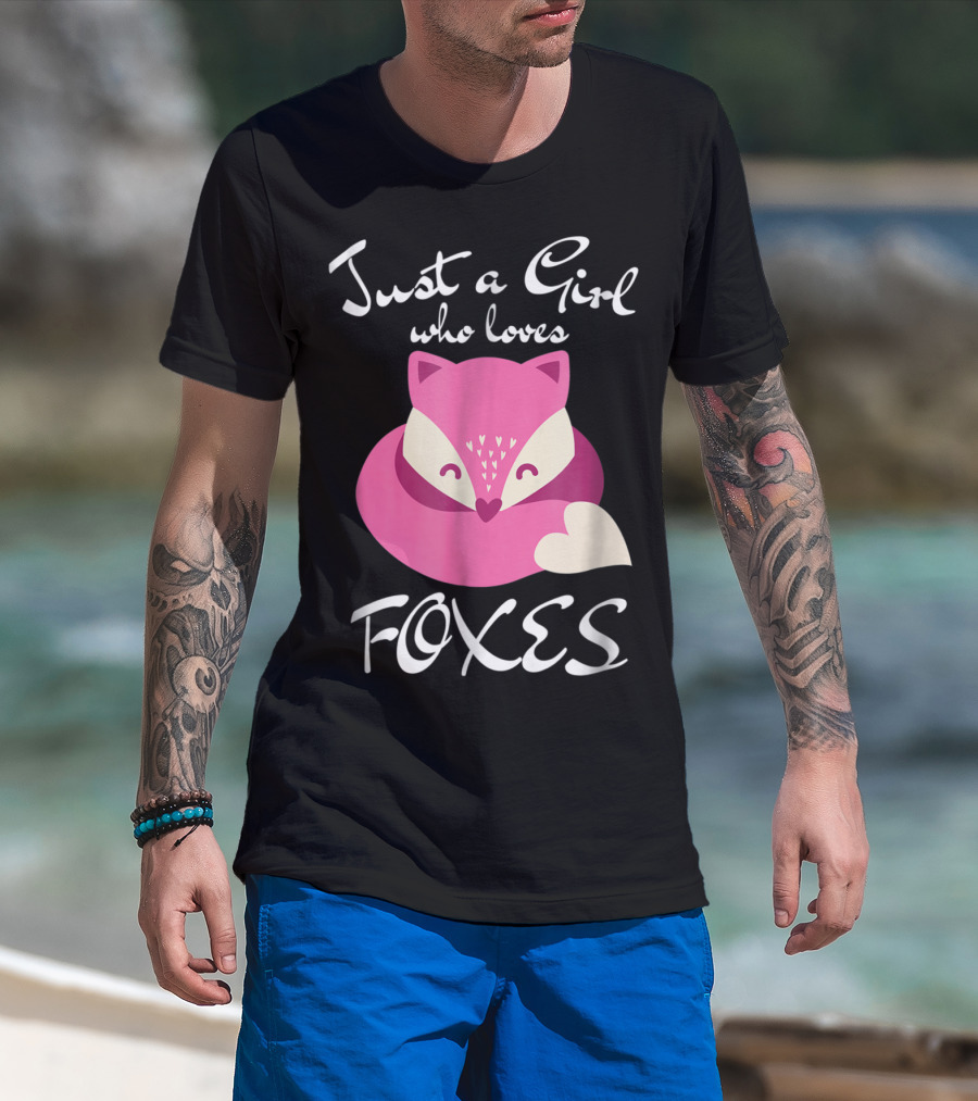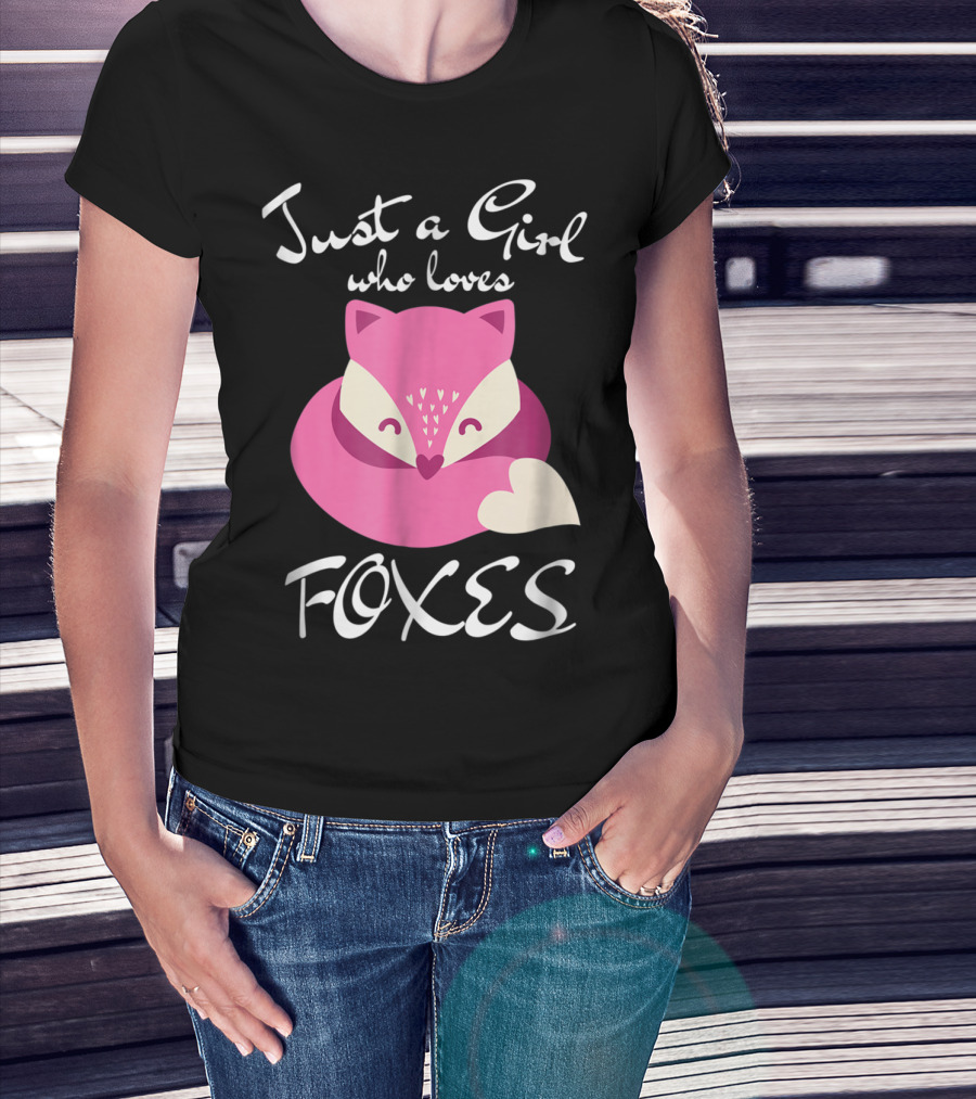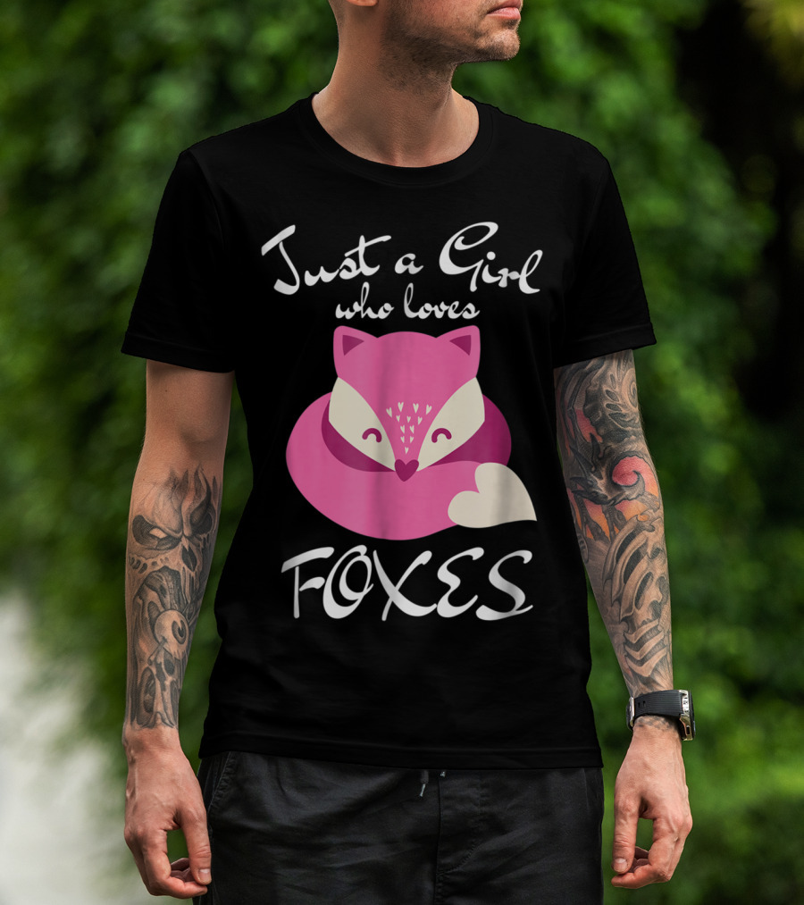 Just A Girl Who Loves Foxes Cute Fox Lover Pink Fox Heart T-Shirt