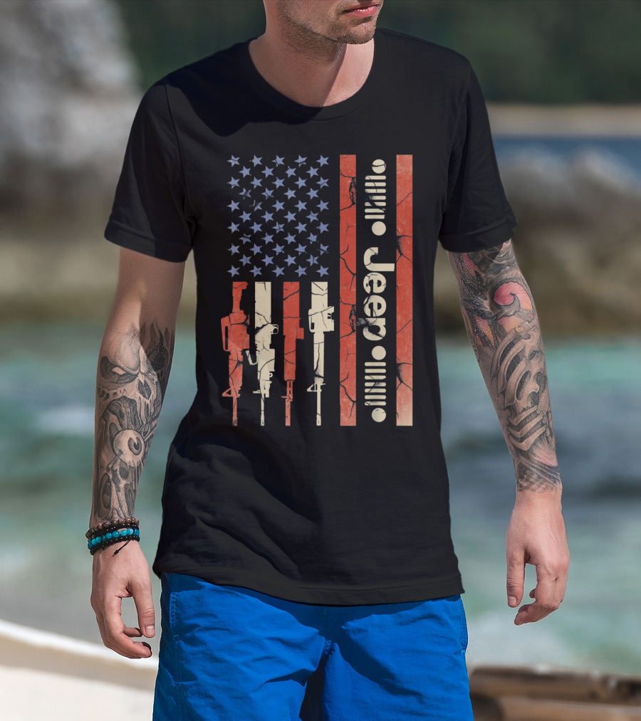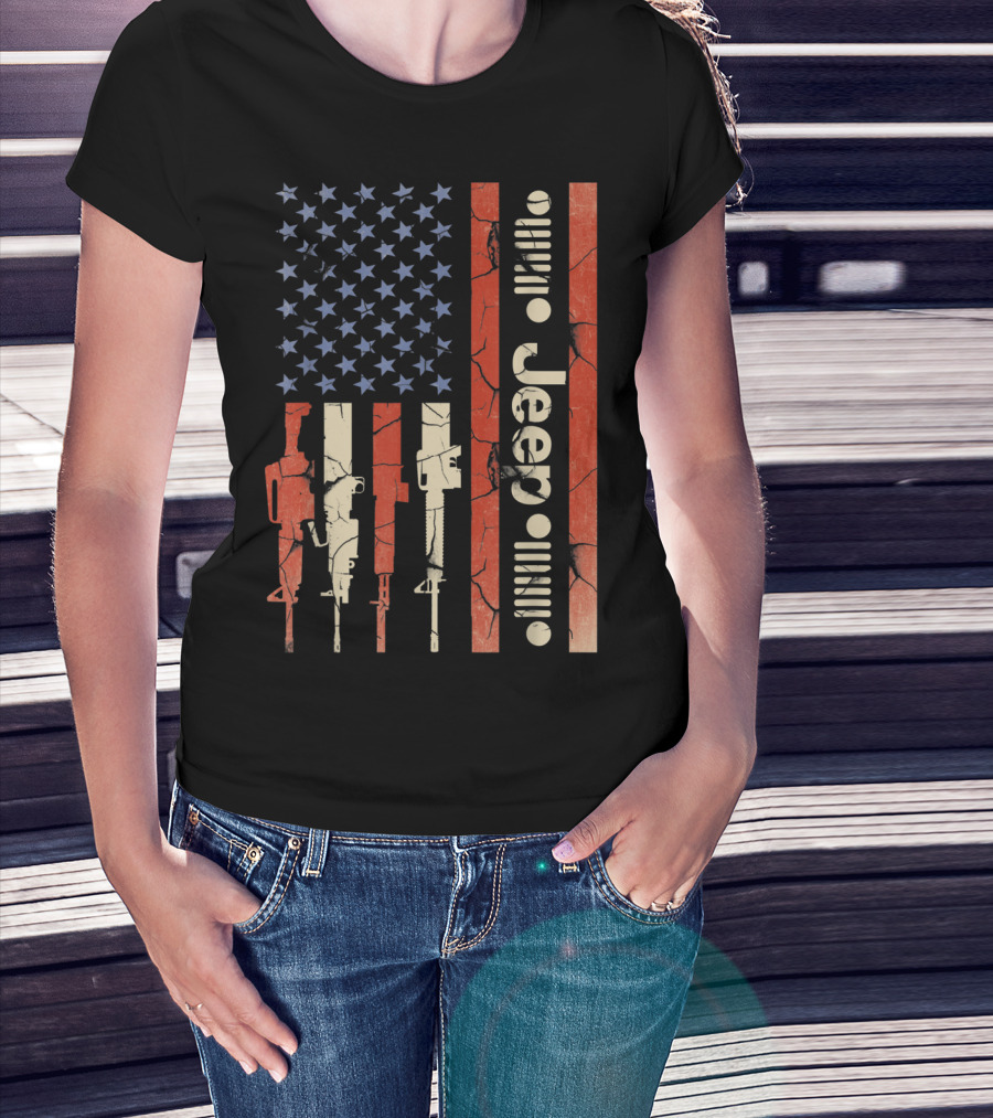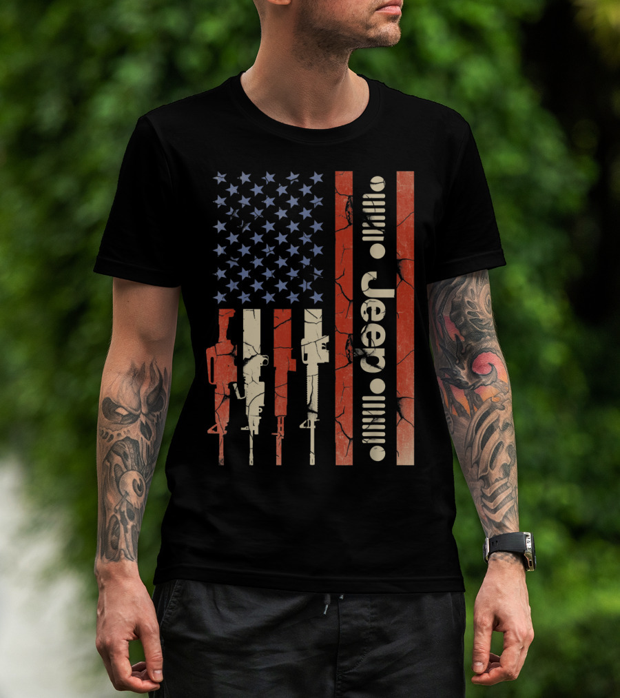 Jeep American Flag With Gun Design For Jeep Lovers T-Shirt