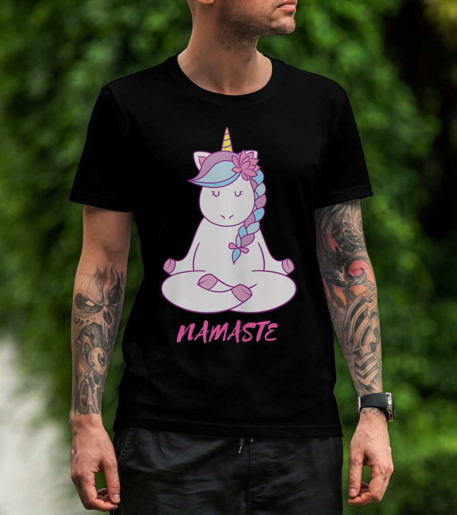 Namaste Unicorn Meditation Yoga Pose With Om Symbol And Flower Mane T-Shirt