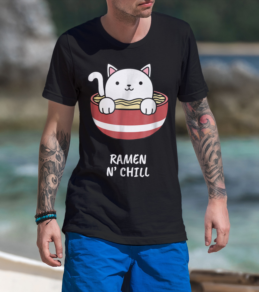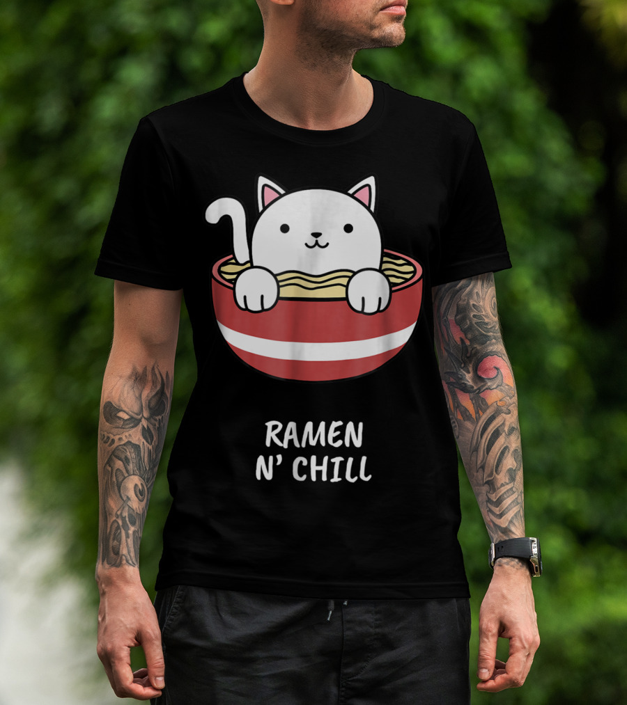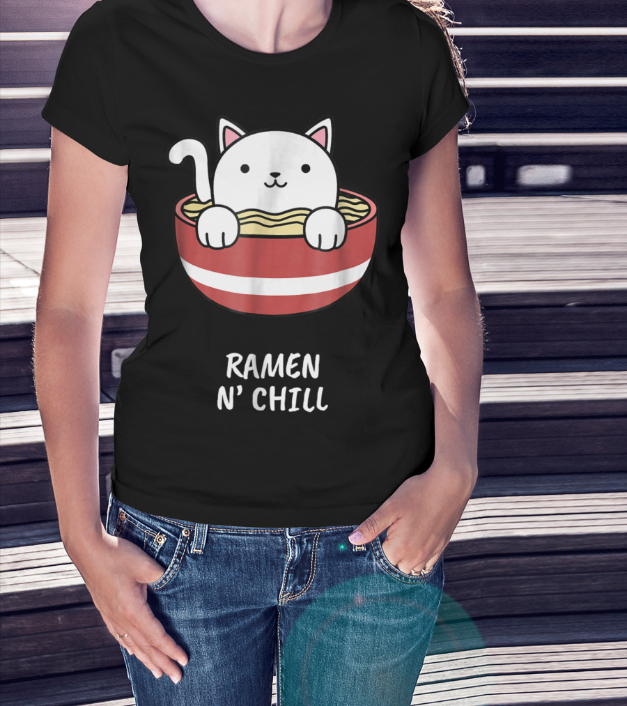 Kawaii Japanese Anime Cat Ramen N' Chill Kids Girl T-Shirt