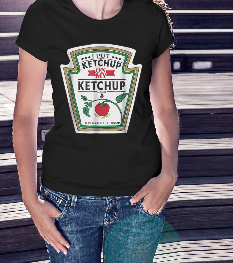 I Put Ketchup On My Ketchup Always Best Tomatoes Please Shake Gently 100% T-Shirt