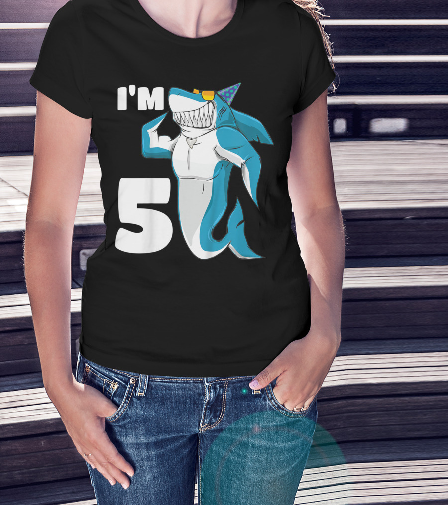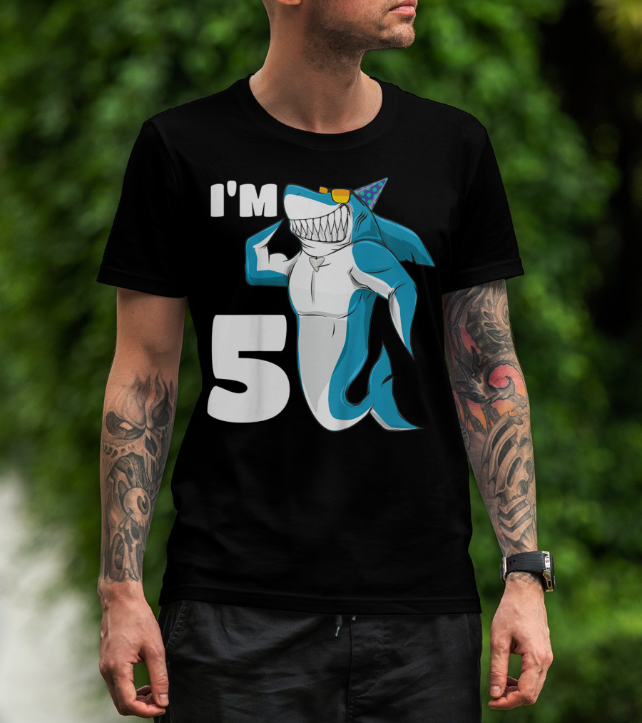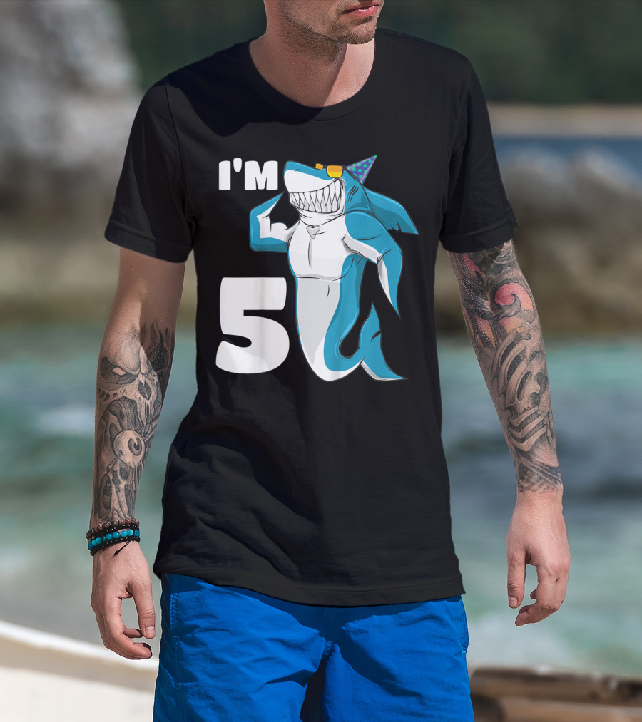 I'm 5 Muscle Shark Birthday Party Hat T-Shirt