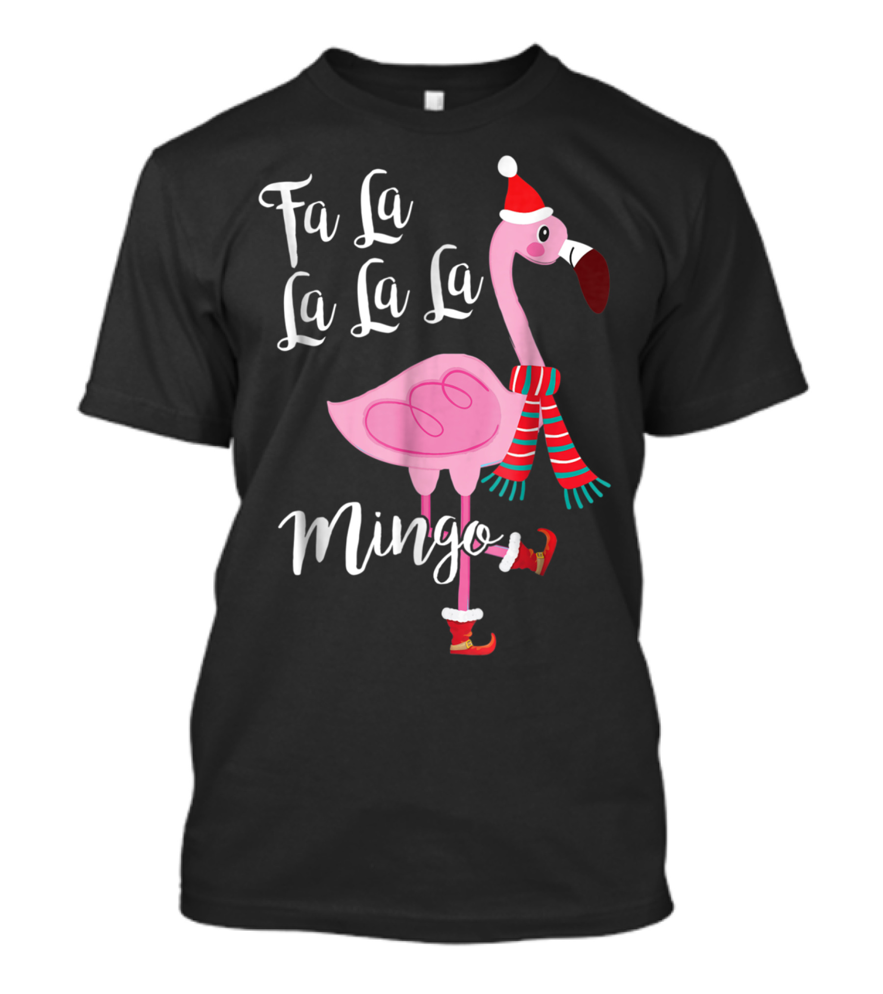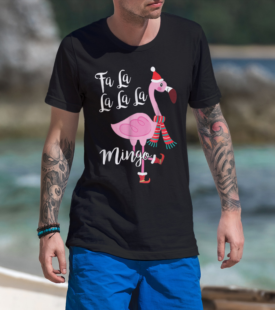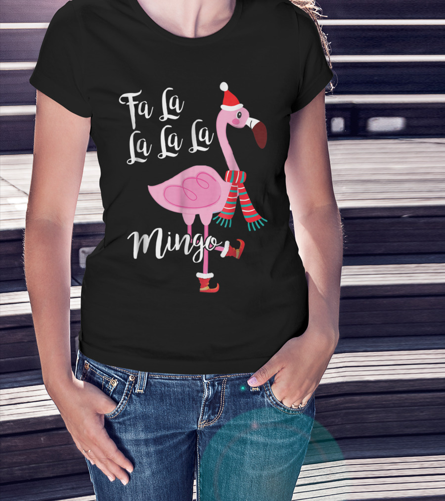 Fa La La La La Mingo Flamingo Cute Christmas Santa Hat Scarf Boots T-Shirt
