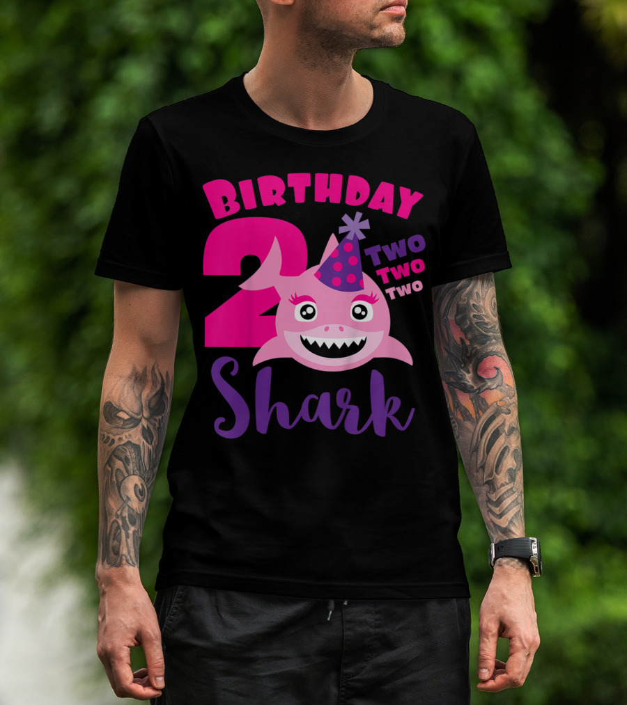 The Birthday 2 Shark Two Two Two T-shirt is designed for everyday wear and a consistent fit. Fabric is pre-shrunk ring-spun cotton with durable stitching. See the size chart below for exact measurements.