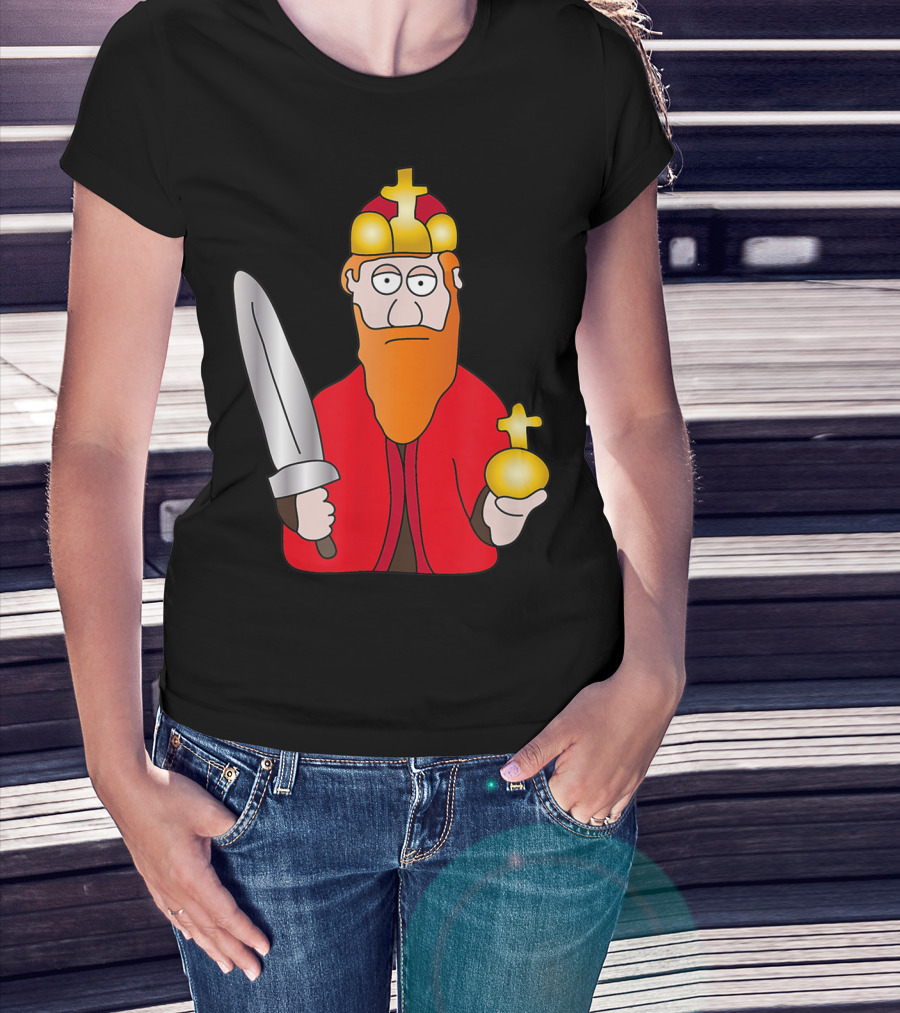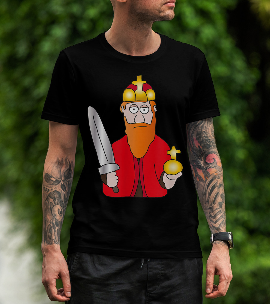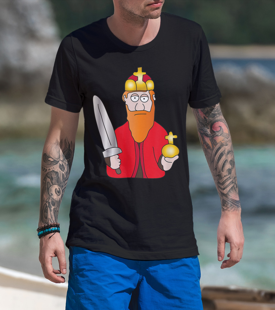 Funny King Barbarossa Cartoon Holding Sword And Orb Knights T-Shirt