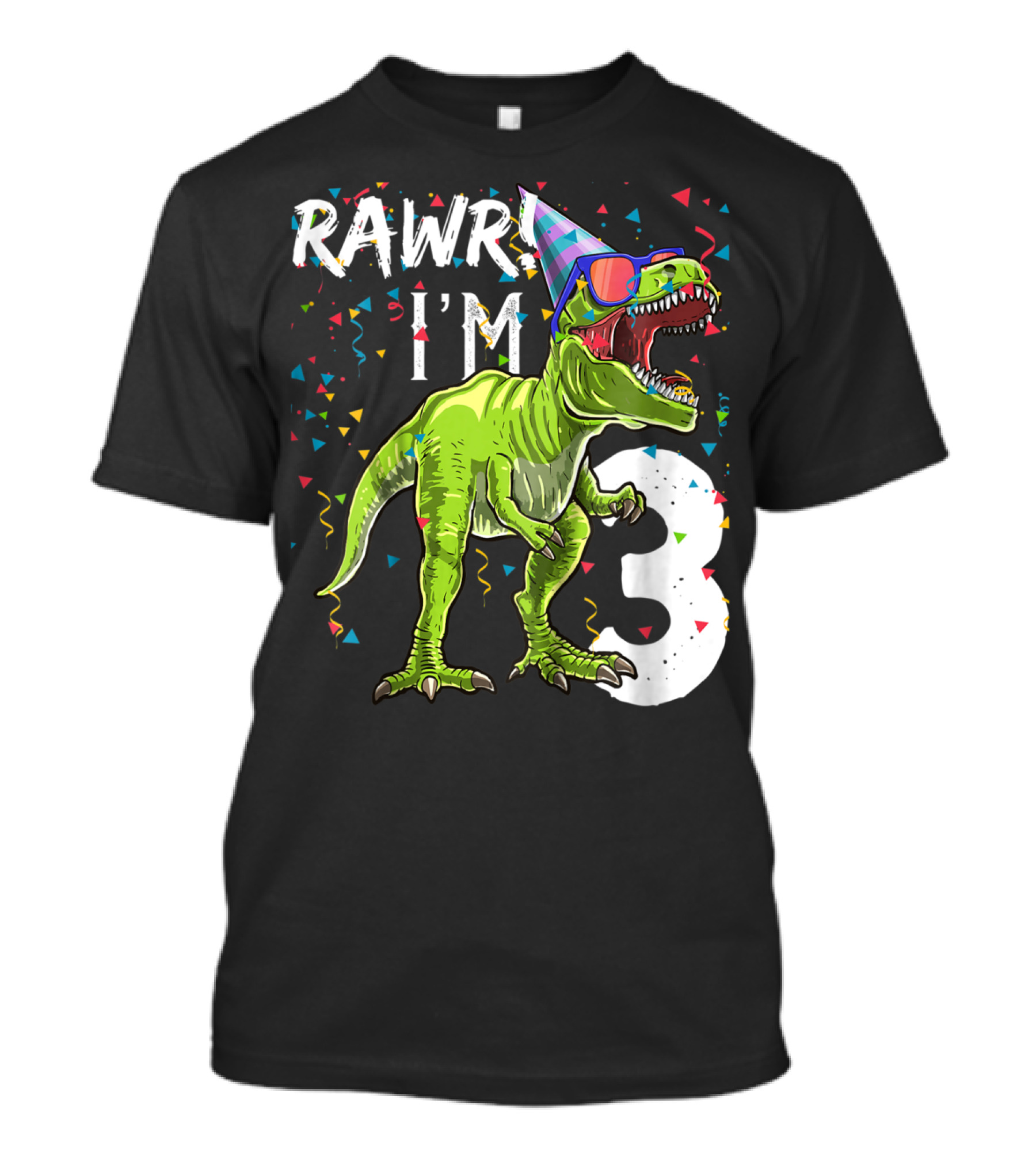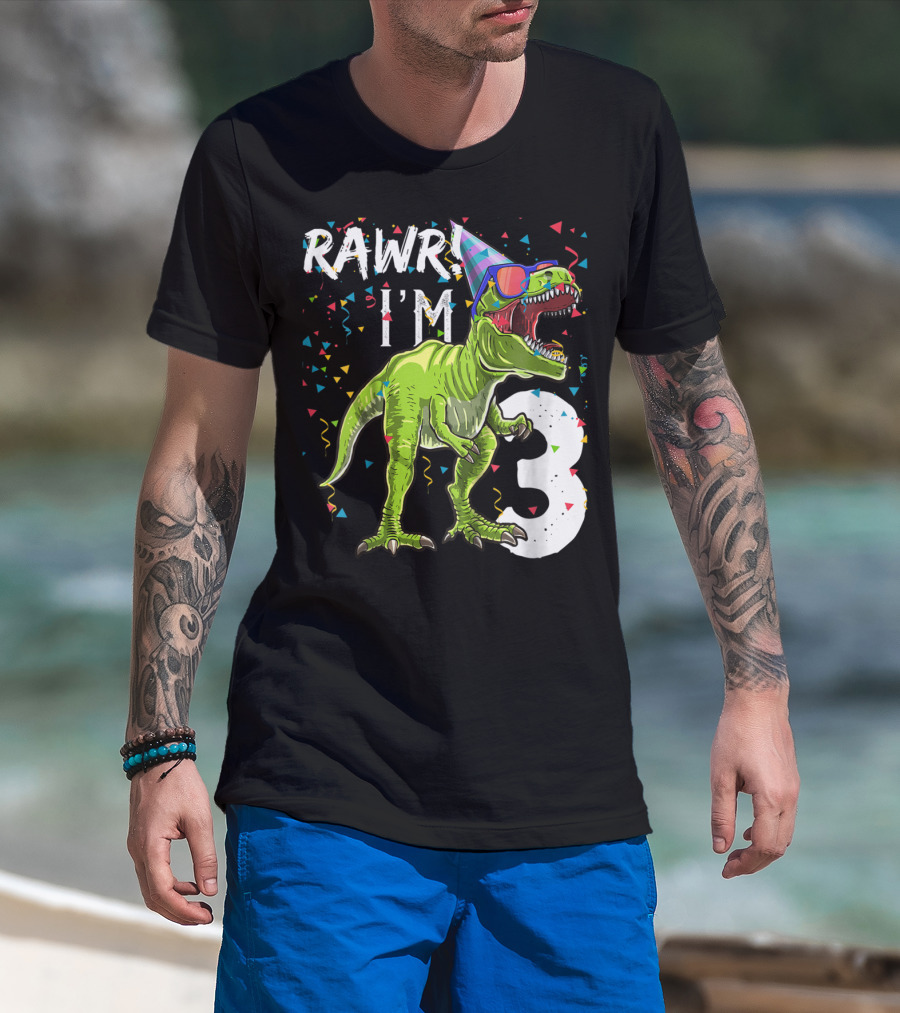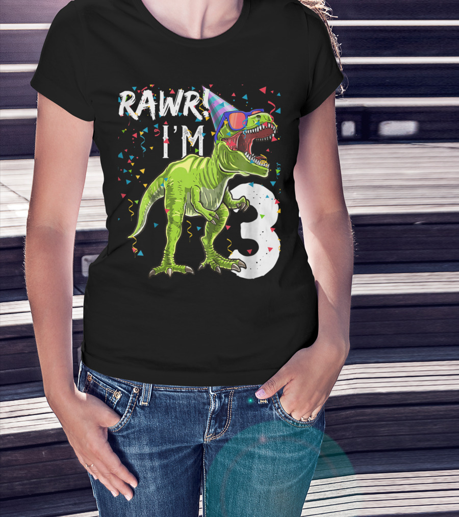 Rawr I'm 3 Dinosaur Birthday Party Hat Confetti T-Shirt