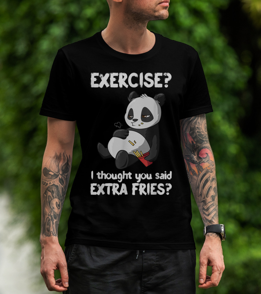EXERCISE I Thought You Said EXTRA FRIES Panda T-Shirt