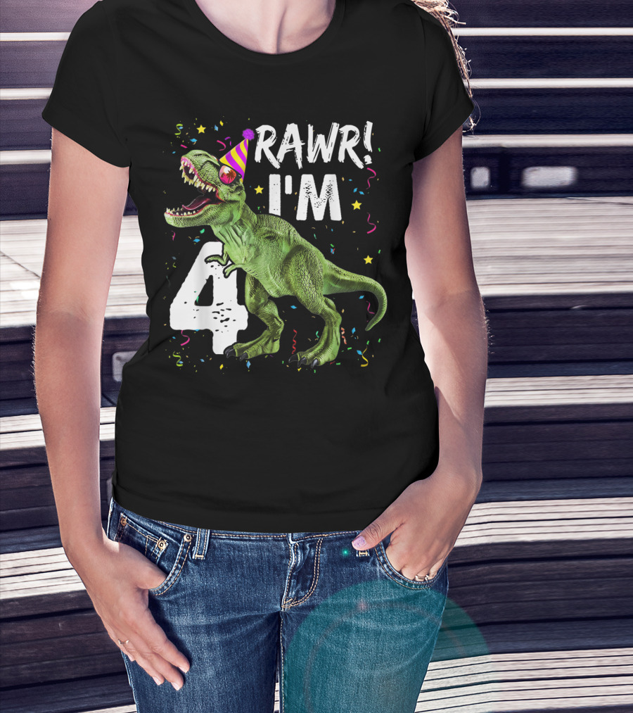RAWR I'm 4 Dinosaur Birthday Party Hat T-Shirt