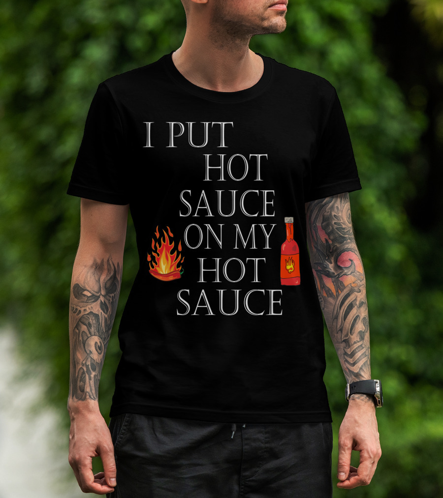 I Put Hot Sauce On My Hot Sauce With Flame And Bottle Icons T-Shirt