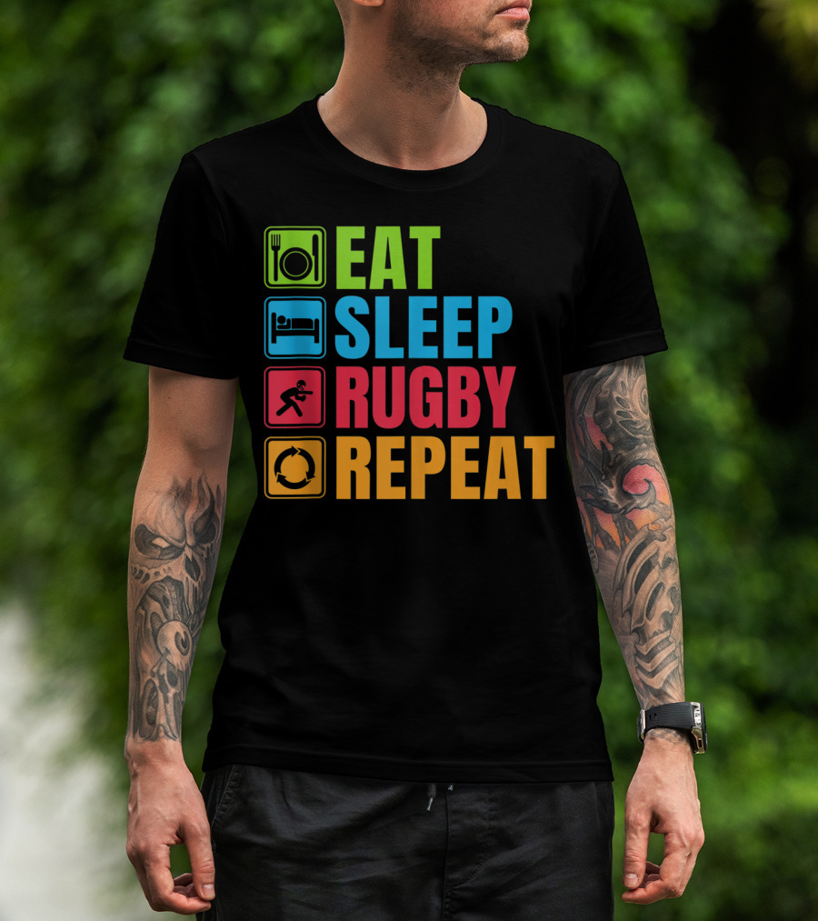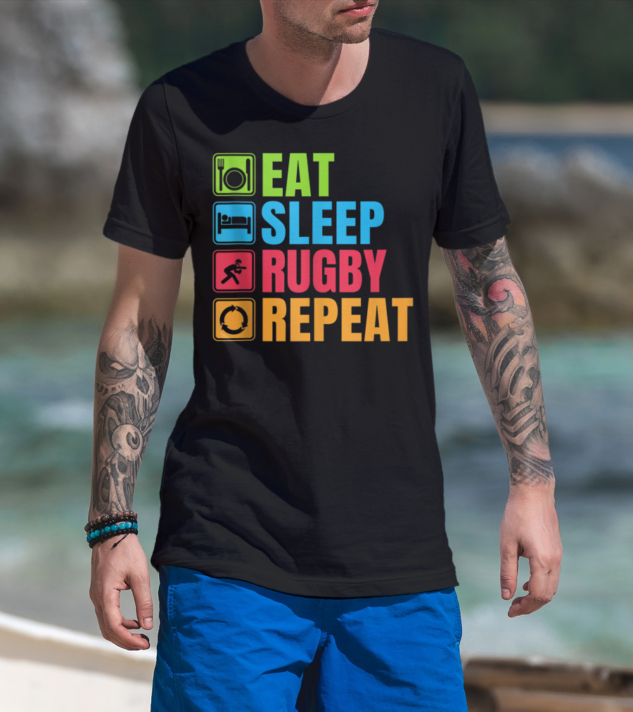 Eat Sleep Rugby Repeat Funny Rugby T-Shirt