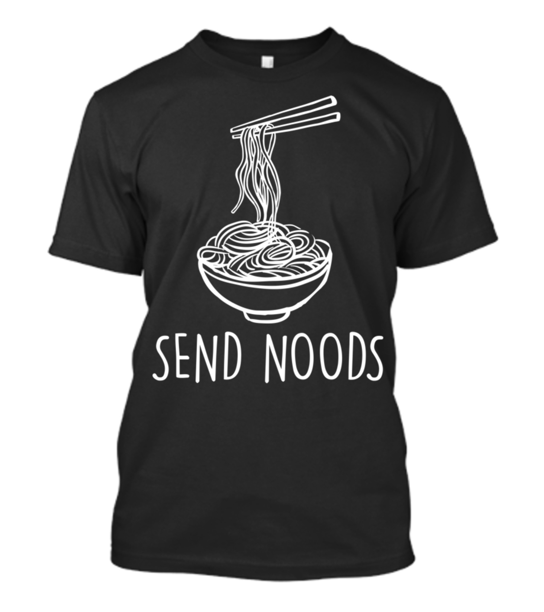 The SEND NOODS Ramen Noodle Love Funny T-shirt is designed for everyday wear and a consistent fit. Fabric is pre-shrunk ring-spun cotton with durable stitching. See the size chart below for exact measurements.