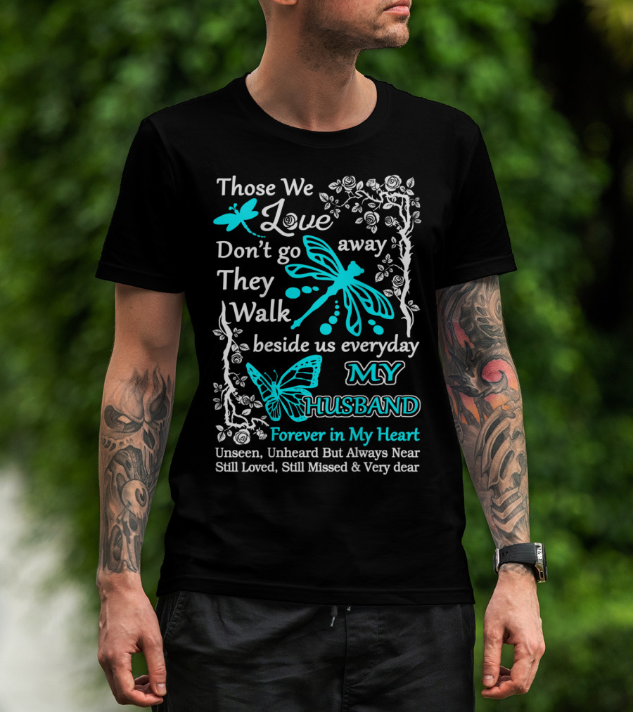 Those We Love Don't Go Away They Walk Beside Us Everyday My Husband Forever In My Heart Unseen Unheard But Always Near Still Loved Still Missed And Very Dear T-Shirt