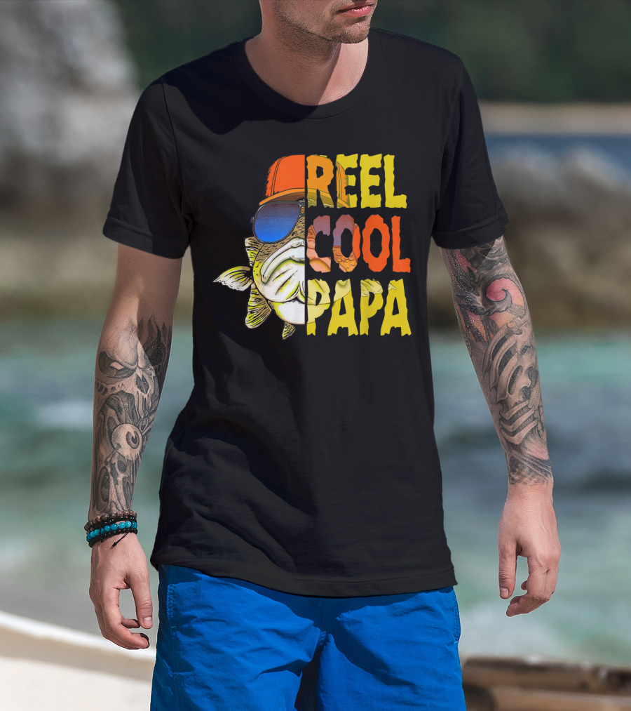 Reel Cool Papa Fishing Fish With Sunglasses And Hat T-Shirt