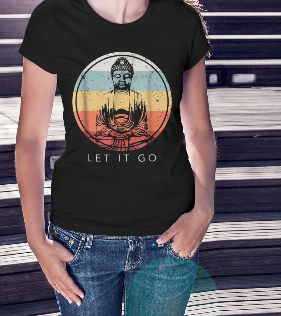 Let It Go Buddha Meditation Vintage Zen Bud Retro Circle T-Shirt