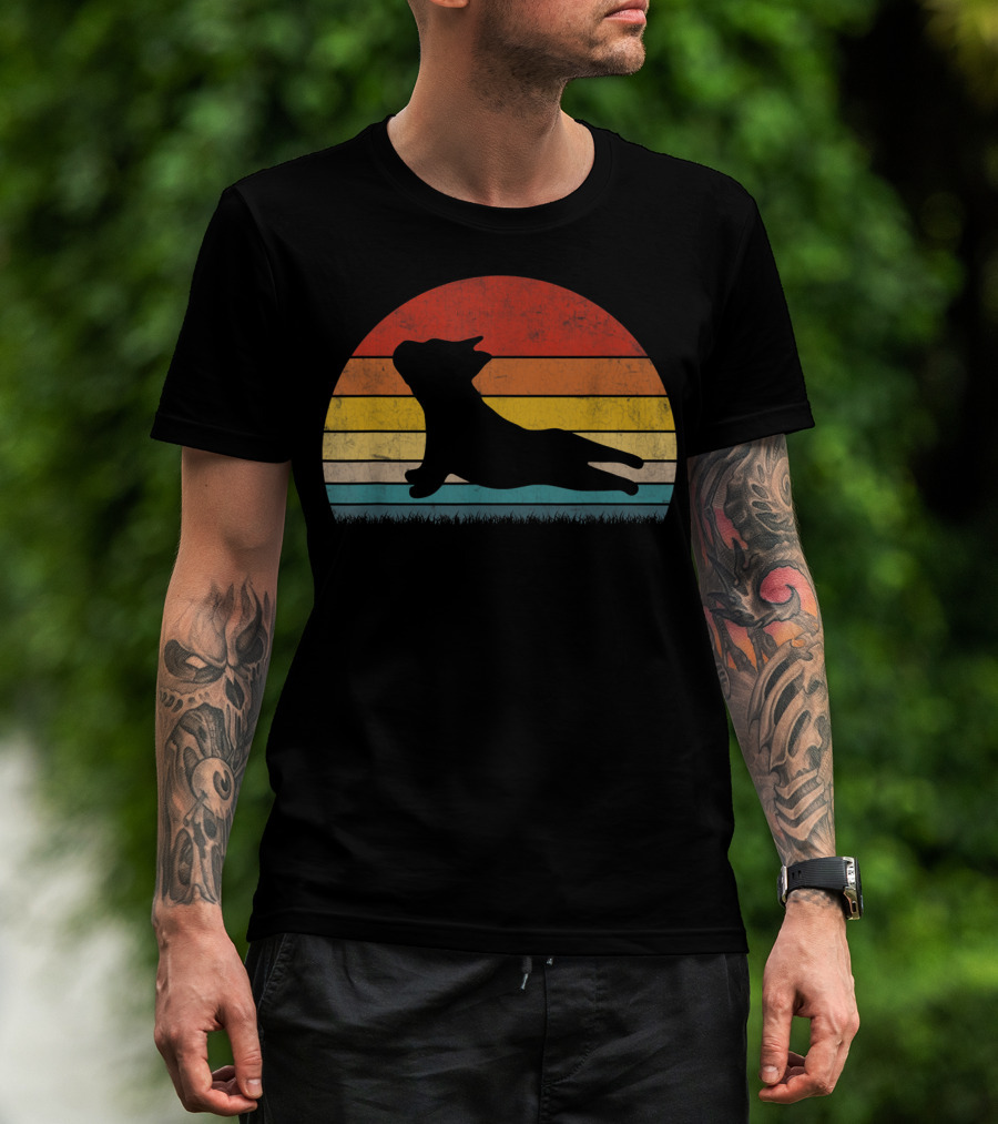 The Retro Sunset French Bulldog Yoga Funny Frenchie T-shirt is designed for everyday wear and a consistent fit. Fabric is pre-shrunk ring-spun cotton with durable stitching. See the size chart below for exact measurements.