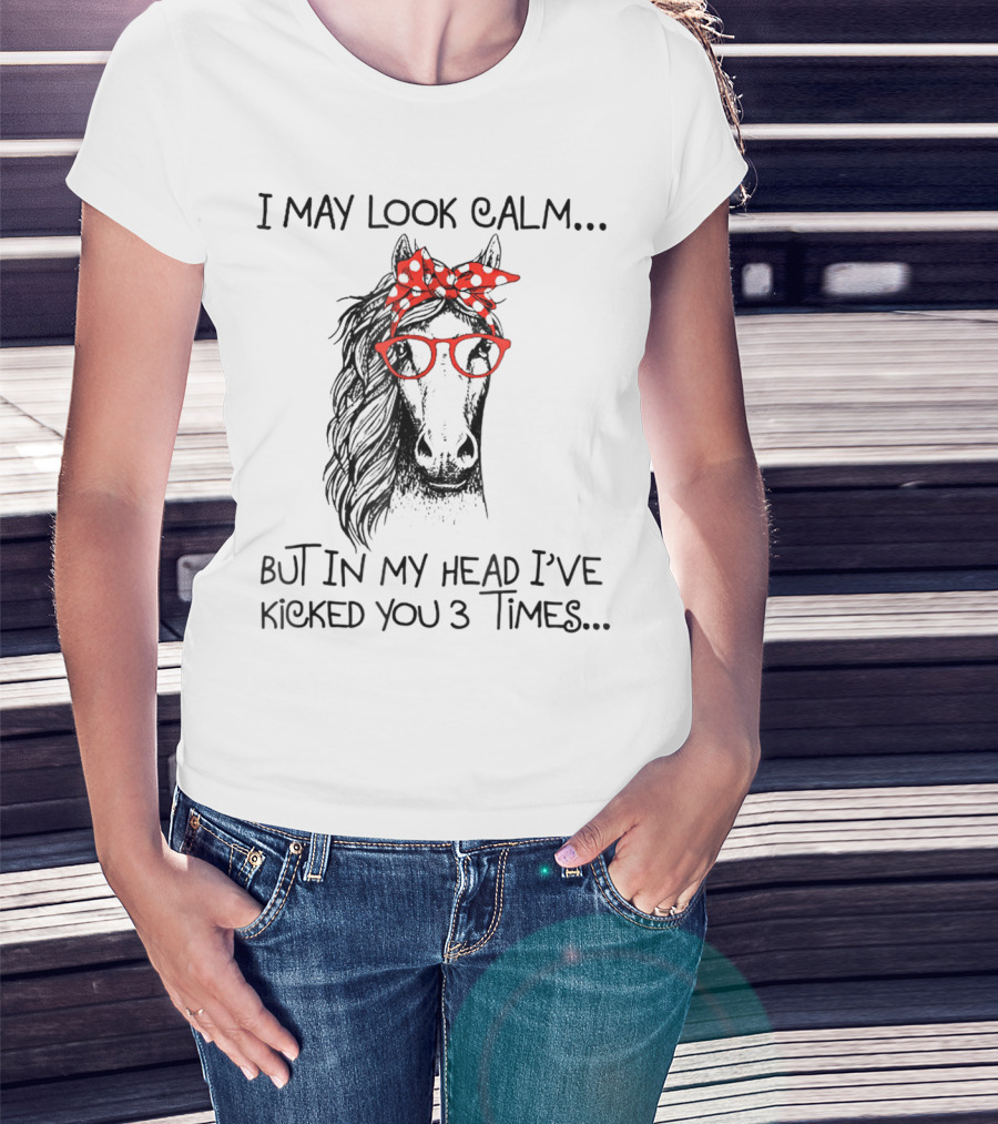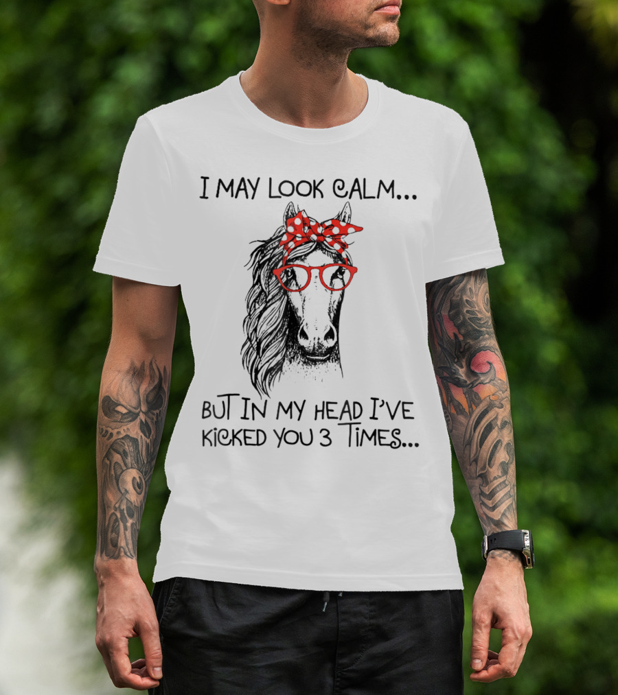 I May Look Calm But In My Head I've Kicked You 3 Times Horse With Red Glasses And Bandana T-Shirt