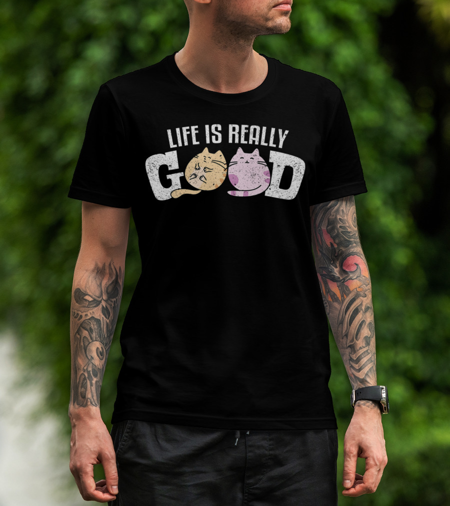 Life Is Really Good Cats Kitty Pet Feline Fur Playful Cat Faces T-Shirt
