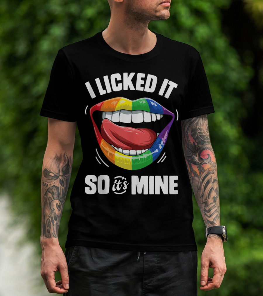I Licked It So It's Mine Funny Lesbian Gay Pride Rainbow Lips T-Shirt