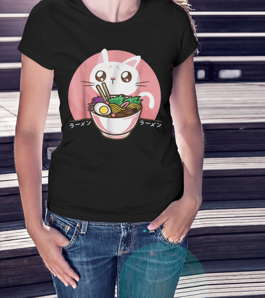 Kawaii Japanese Ramen Noodles Anime Cat Love T-Shirt