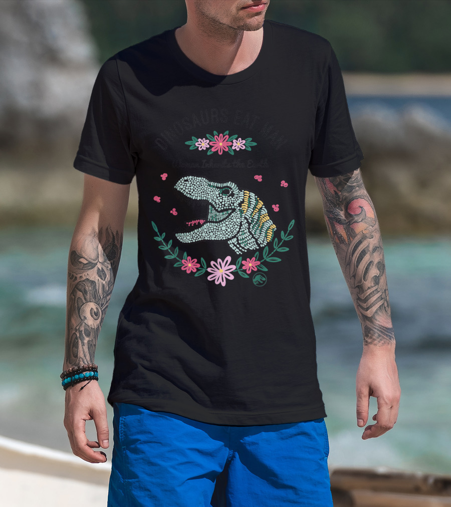 Jurassic Park Dinosaurs Eat Man Woman Inherits The Earth T-Rex Floral T-Shirt